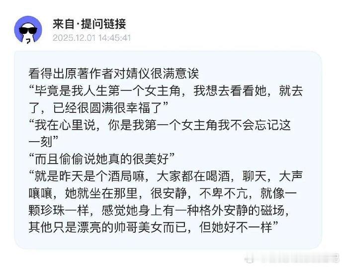 致我那菜市场的白月光作者聊张婧仪 救命!原著作者探班后说 “已圆满幸福”,这种对