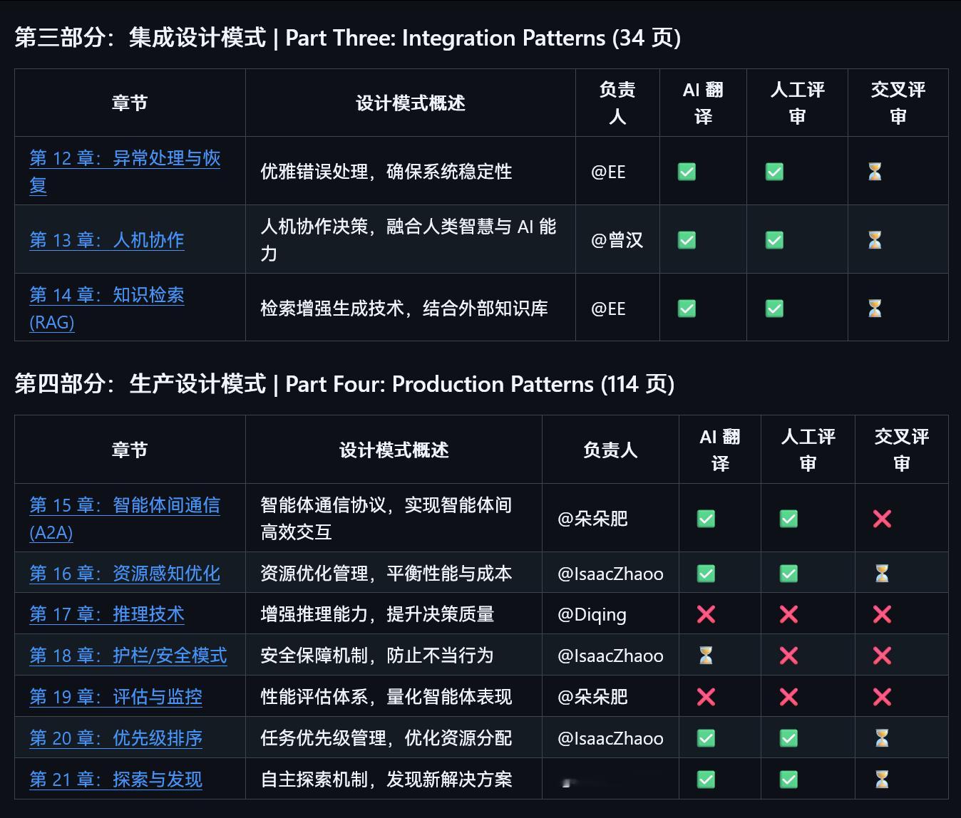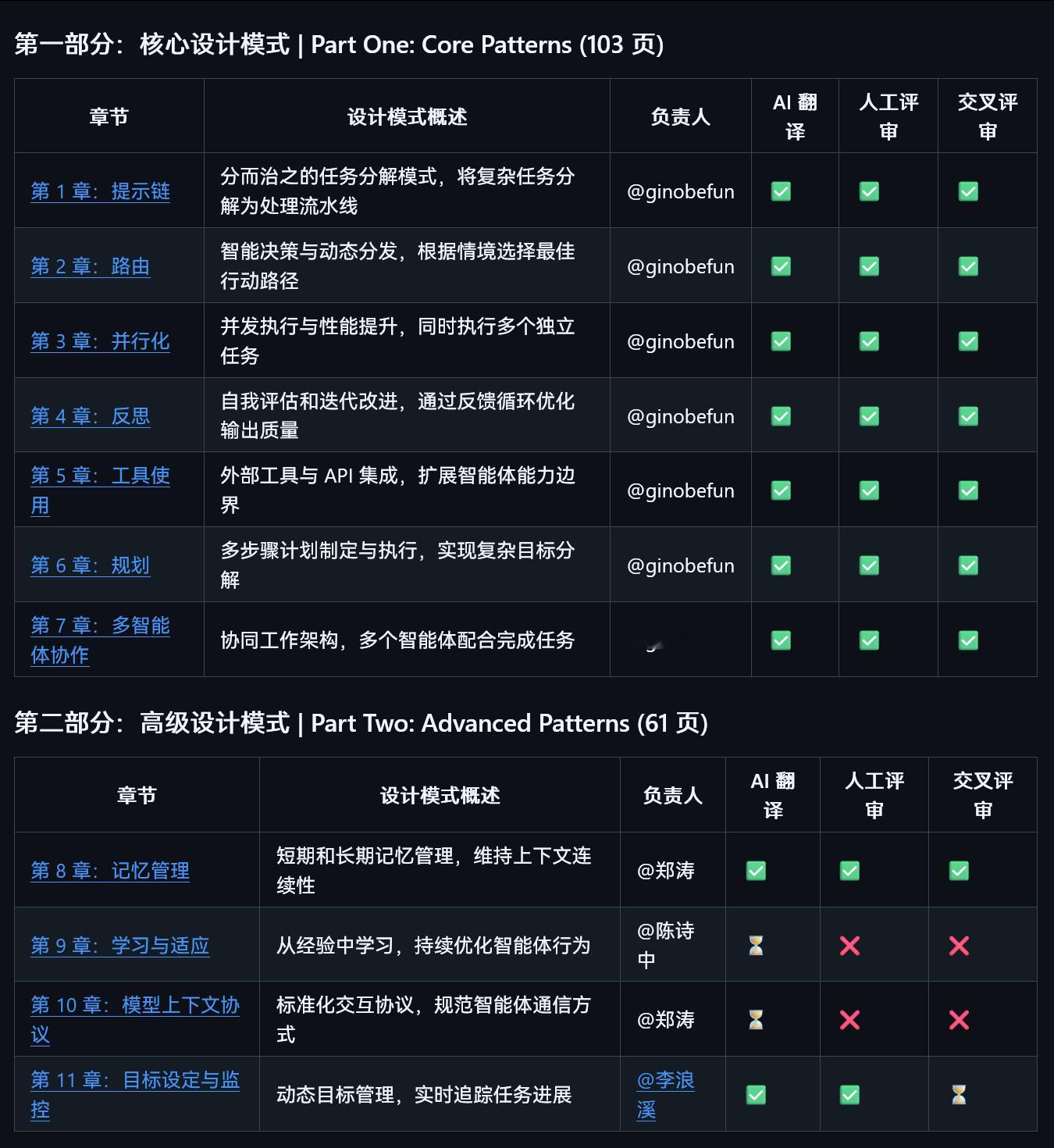 Agentic Design Patterns | 智能体设计模式 (中文翻译)github.com/ginobefun/agentic-design-patterns-cn本书大部分章节都已经翻译完毕。本书是 Antonio Gulli(谷歌工程总监)近期发布的一本非常有影响力的著作。这本书被广泛认为是构建下一代AI智能体(AI Agents)的“实战蓝图”。这本书之所以受到高度关注,是因为它将软件工程中经典的设计模式理念引入到了大语言模型和智能体的开发中,为这一新兴领域提供了标准化的架构语言。科技先锋官