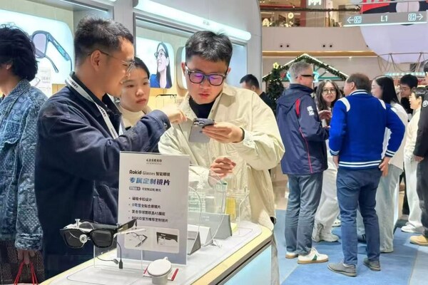 杭州2025年12月2日--2025年11月-12月,浙江百年品牌毛源昌眼镜与国内先锋企业Rokid,于杭州西溪天街共同打造主题快闪店,此次活动集产品体验、专业验配与潮流互动于一体,展出了RokidGlasses及暴龙联名款在内的多系列智能眼镜。