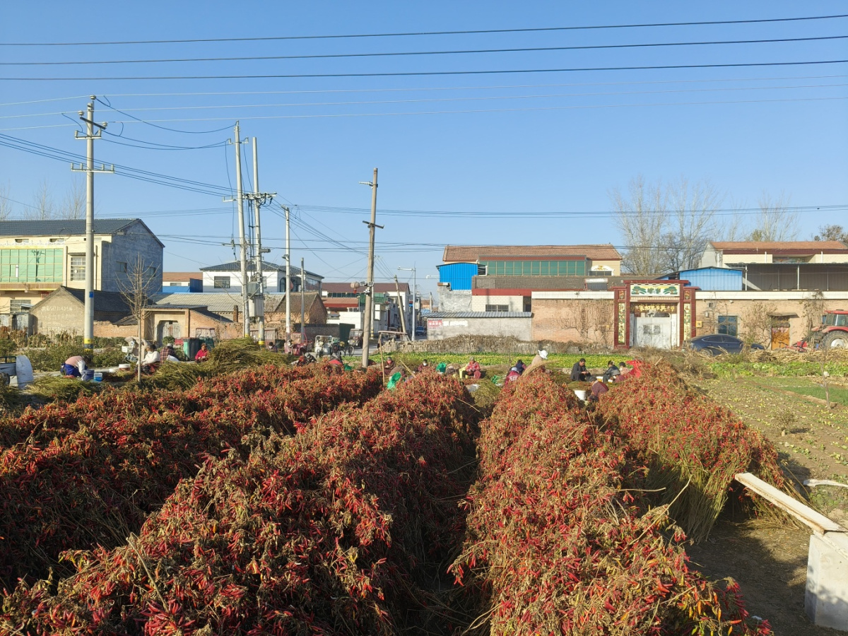 近日,封丘县黄德镇叶寨村的辣椒田喜气洋洋。一个个细长尖翘的红尖椒挂满枝蔓,连枝成串聚得满满当当,一派丰收盛景。种植户邹淑燕与采摘工人忙碌其间,采摘、分拣、装筐等工作有条不紊,装满辣椒的竹筐整齐排列,等待运往收购点,每个人脸上都洋溢着丰收的喜悦。