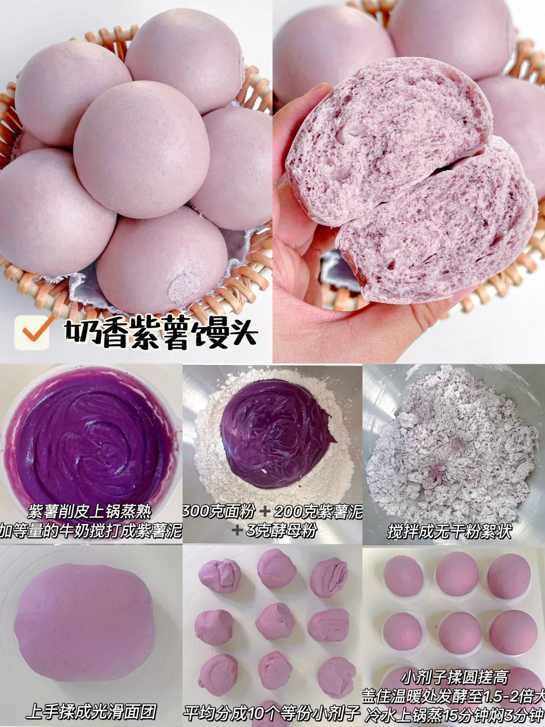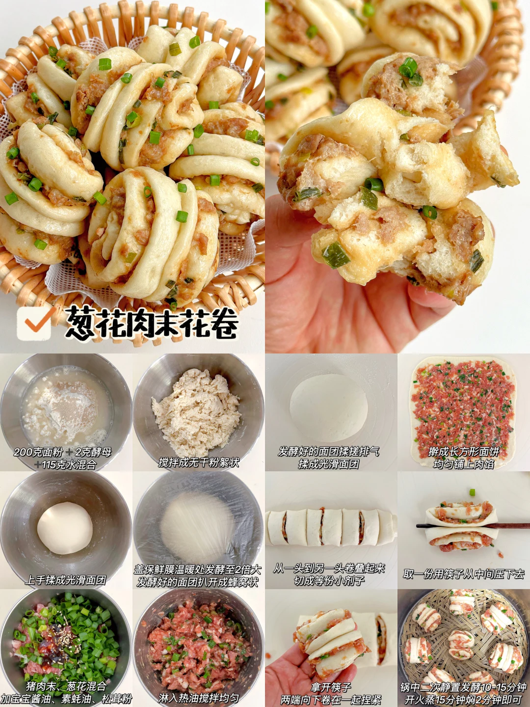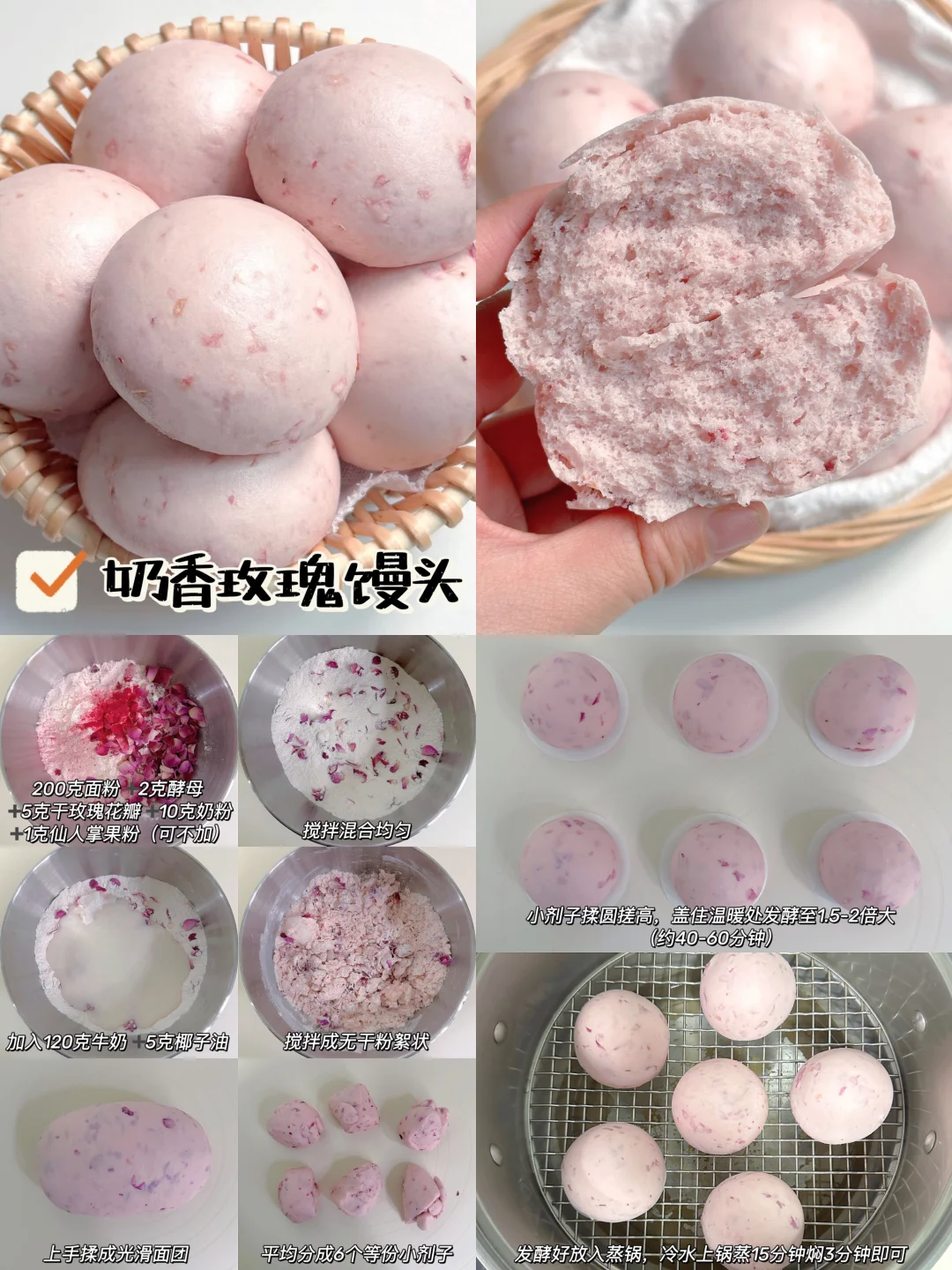 大家好呀!☺️ 宝宝很适合吃馒头、花卷这些易消化的发面食物哦!今天整理了4款,诺宝平时爱吃的馒头花卷,每一款都蓬松暄软,易抓握,易消化,做法也很简单。一次多做点冻起来也很很省妈哦!姐妹们,快来安排! ✅宝宝葱油花卷 ✅葱花肉末花卷 ✅奶香玫瑰小馒头 ✅奶香紫薯小馒头 👩🍳具体做法和用量,请参考以上图片文字,如有疑问欢迎评论区留言交流~~~