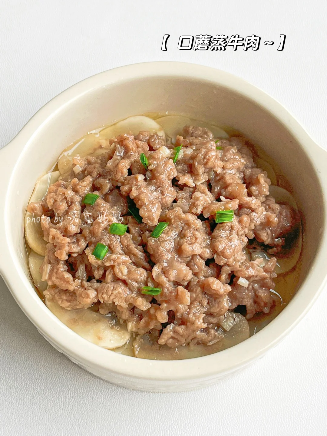 天气逐渐变冷,干燥的秋冬季蒸菜无疑最为适合宝宝吃。今天分享的口蘑蒸牛肉,牛肉软嫩不柴,口蘑鲜美多汁!搭配在一起,不仅好吃还很营养,姐妹们快来试试吧!~ 🛒食材: 牛里脊,口蘑,姜片,蒜末 ~~~~~~~~~ 👩🍳做法: 1️⃣牛肉逆着纹路切薄薄片 2️⃣加姜片➕蒜末➕宝宝酱油➕淀粉,抓拌均匀。再加一勺辅食油,抓拌均匀,腌制15分钟以上 3️⃣口蘑切片,铺到蒸碗里,摆上牛肉,水开上锅蒸12分钟即可
