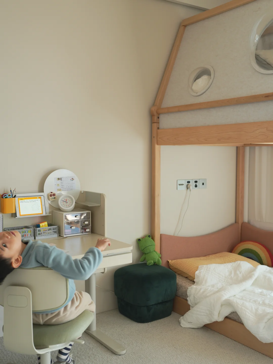 童房用了三年,不管娃喜不喜欢,反正我挺喜欢的。低饱和的色彩、高颜值的家具。最重要的是可以随着年龄变化~
