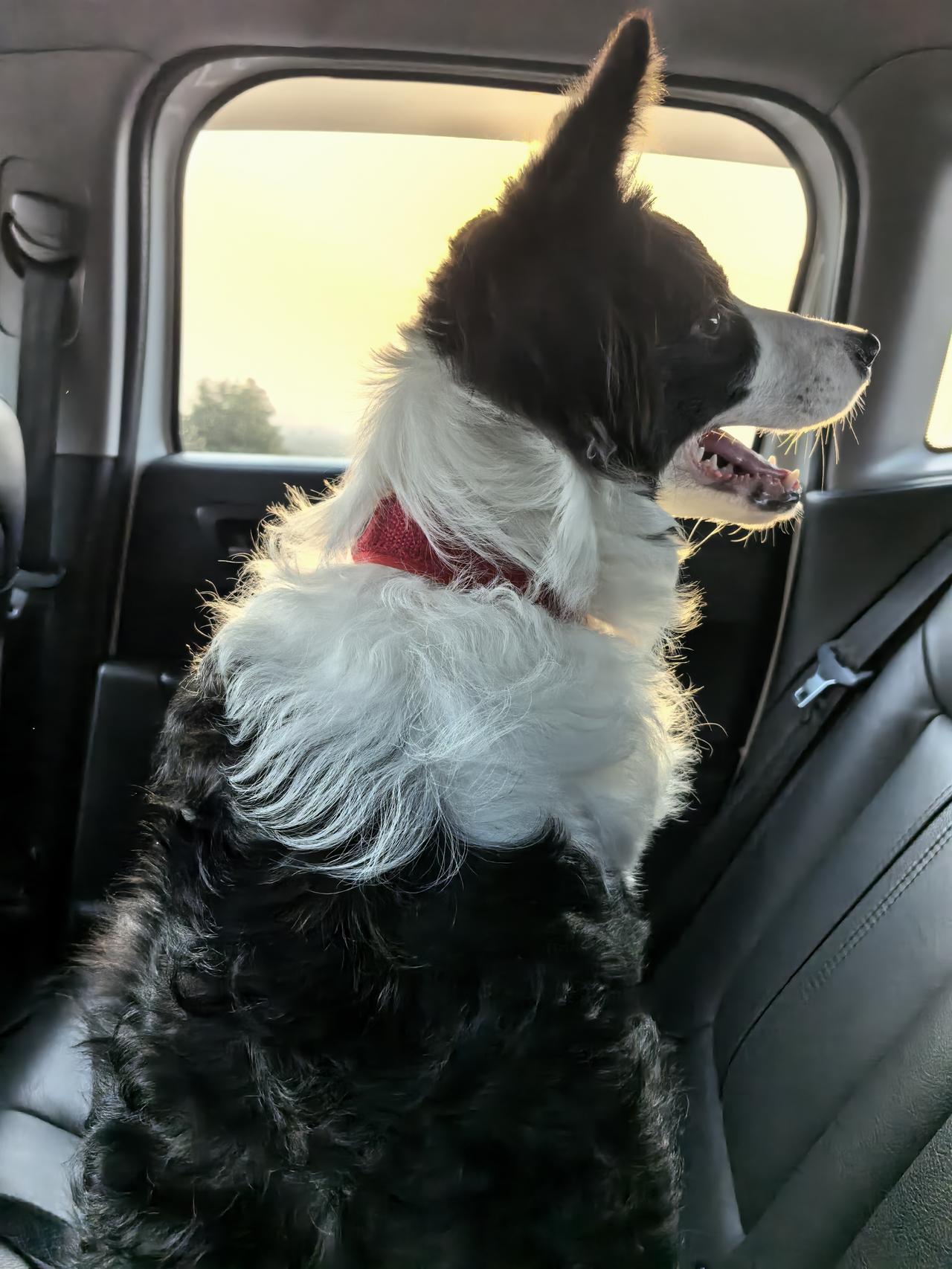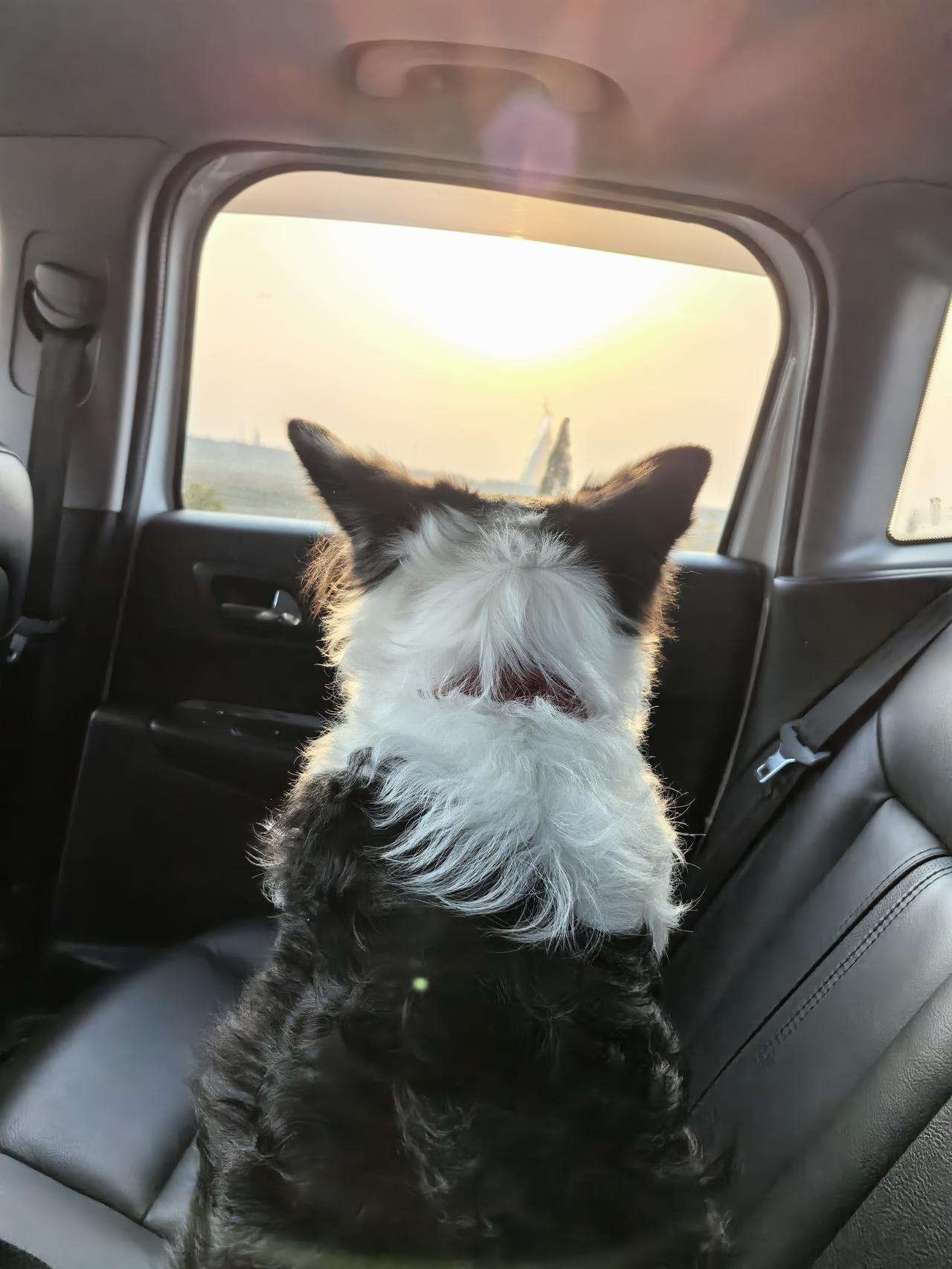 带着毛孩子途途出门远行 它第一次坐车出远门,从最开始的上车兴奋、激动、到处瞅,听到车过高速路上的减速带,就到处找声音的来源,再到有点晕车,趴窝不动了,总体来说还是挺不错的,中途没有吵着要吃要喝要尿。 那就睡觉吧,途途,睡一觉醒来就可以见到哥哥啦!