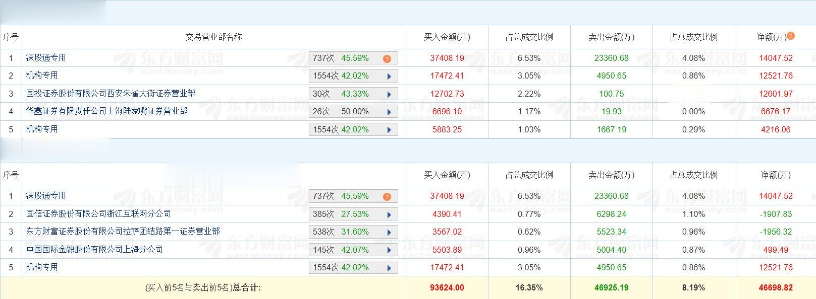 龙虎榜丨航天发展3连板,深股通净买入1.4亿元,二机构净买入1.67亿元