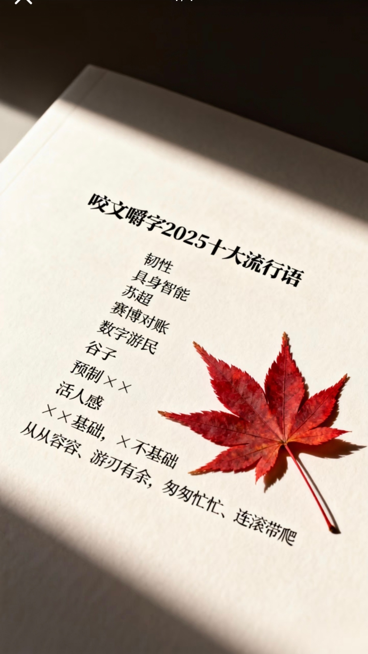 看了眼2025十大流行语,我就听过6个,有4个完全不知道是怎么回事!你听过几个? 韧性具身智能苏超赛博对账数字游民谷子预制××活人感××基础,×不基础从从容容、游刃有余,匆匆忙忙、连滚带爬