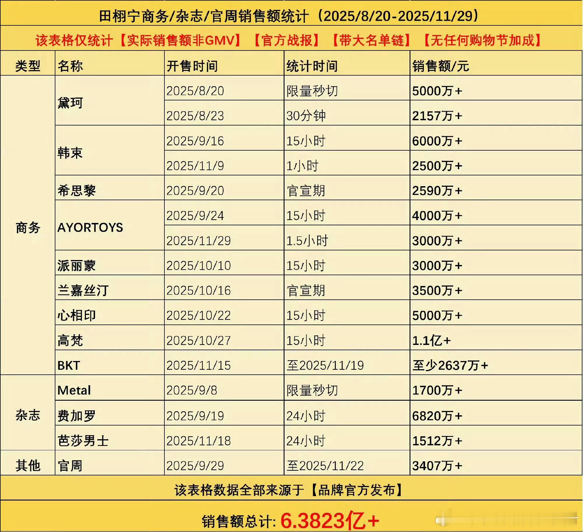 🍉网友汇总田栩宁商务/杂志/官周三个月销/售额总计高达6.38亿+顶流商业价值好厉害