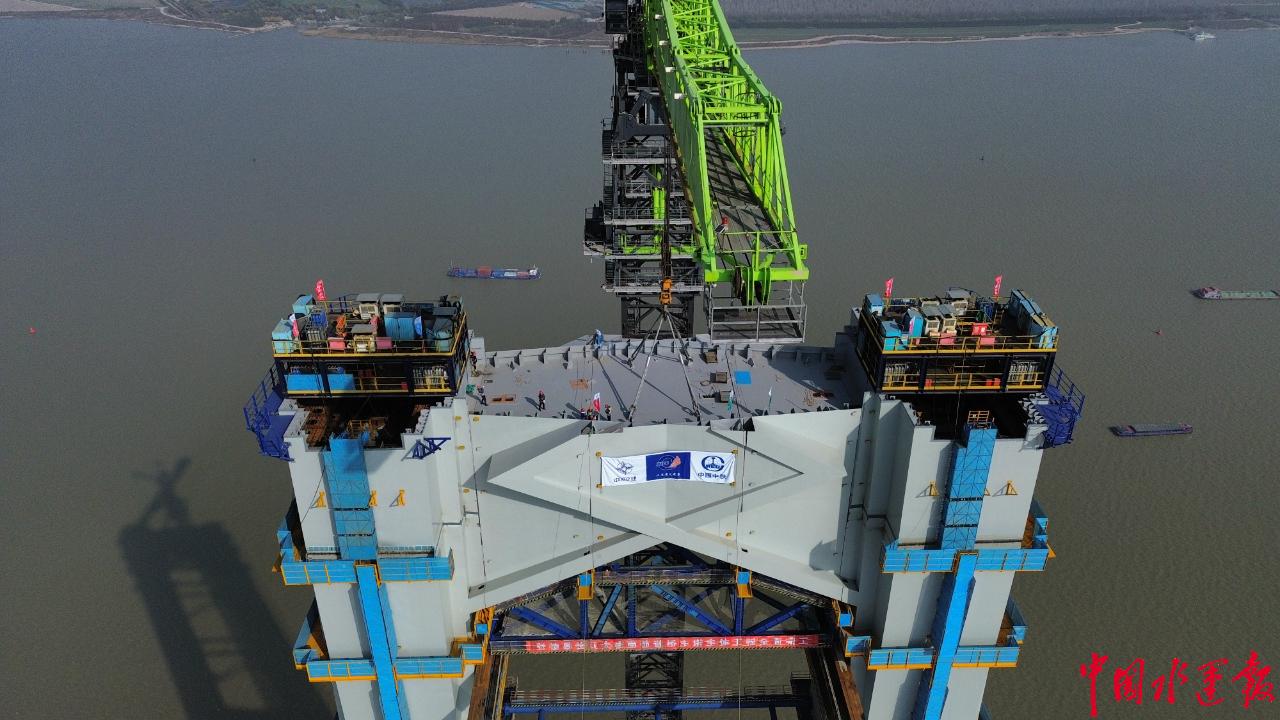 “此次上横梁精准合龙,标志着大桥南航道桥南主塔主体工程施工顺利完成。从设计图纸到高塔矗立江心,从主塔首节段吊装到上横梁合龙,历时630多天,每一次吊装的精心组织,每一个节段的精准对接,都是团队攻坚克难的成果,更是中国桥梁技术向世界顶尖水平迈进的见证。”中交二航局张靖皋长江大桥项目技术负责人黄修平表示。