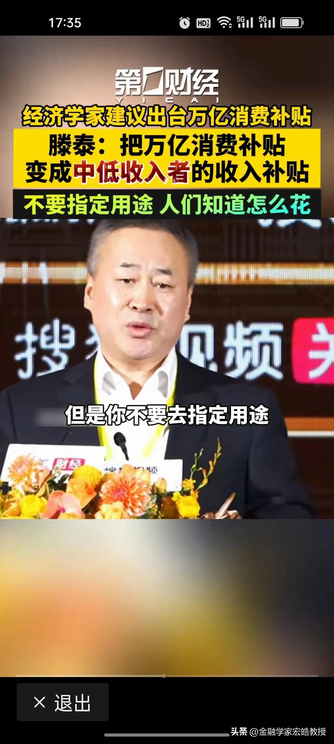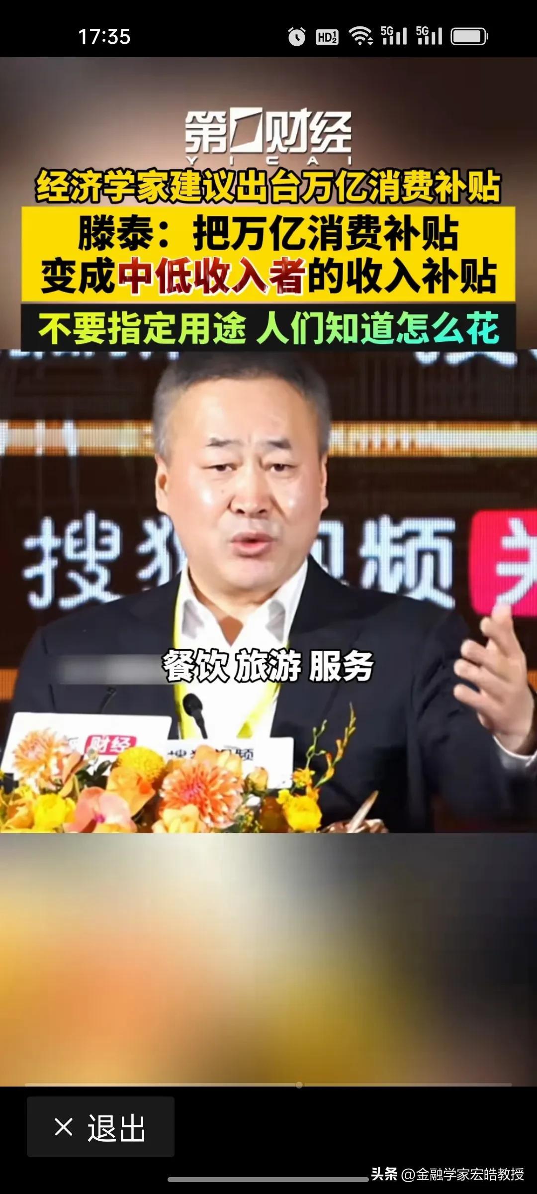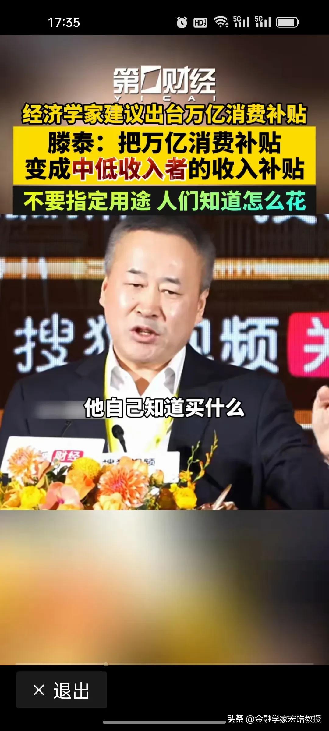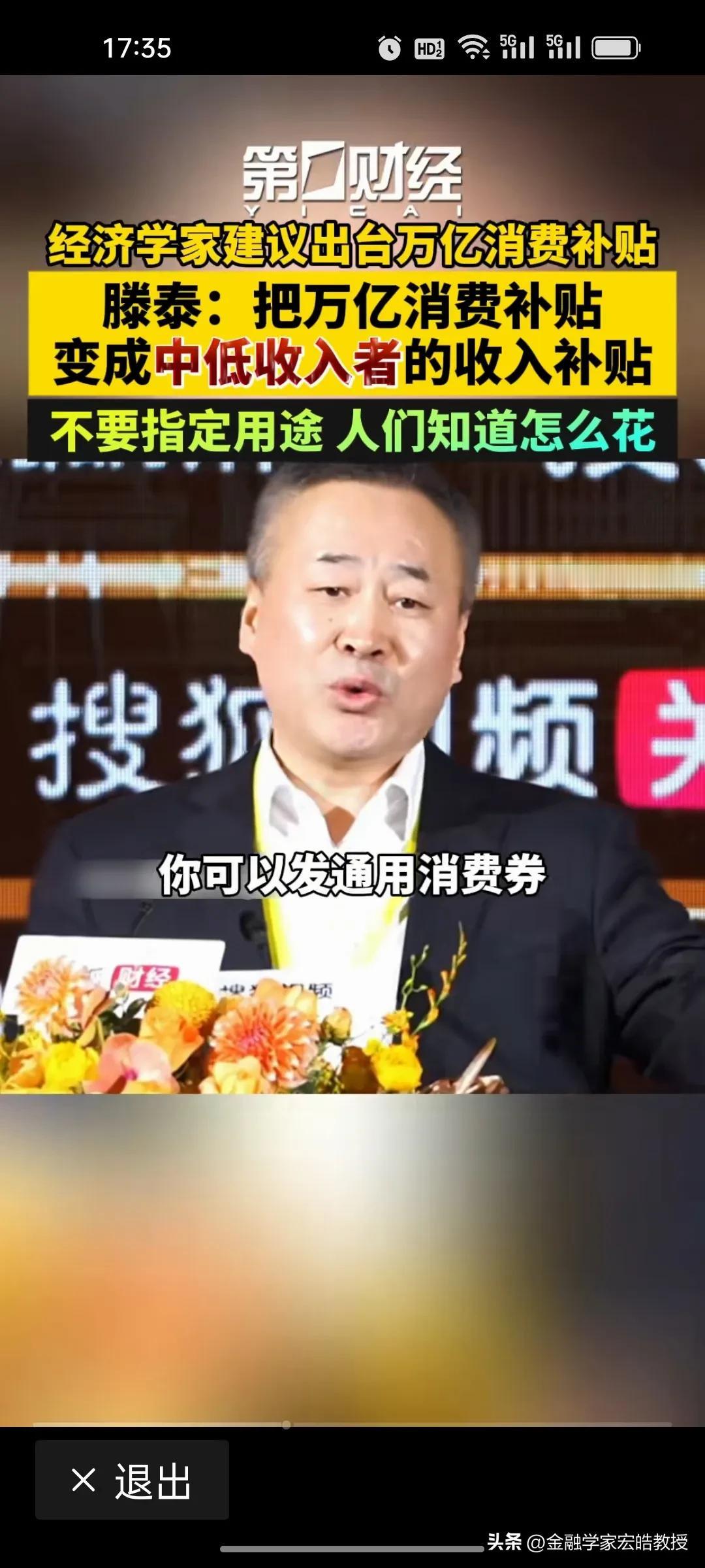 经济学家滕泰给提振消费支招,建议出台万亿消费补贴,要变成中低收入者大收入补贴,不要指定买家电买汽车,大家知道怎么花。一万亿补贴能带来三万亿需求增长,带动2-3个电的GDP增速。 比如,今年中央已经发了3000亿的消费补贴。带动相关商品消费额超过2万亿。未来要形成“补贴 - 消费 - 增长 - 收入 - 再消费”的良性循环,继续补贴是少不了的。 滕泰说不限用途的消费券,确实更加实用,满足了各方面的消费需求,不再仅限于电子产品,家电和汽车,也能让其他消费品行业从补贴中获益。 另外,要扩大消费还有两个重要的关键点,一个就是增加工资收入,大家收入提高,自然消费动能就会释放。二是增加财产性收入,现在买房子不能增值,很多人当年买房在高位,现在房价跌了,还要继续还房贷,自然提不起消费兴趣,如果能在理财市场能赚到钱,不管买股票还是买基金,都有钱赚,能覆盖房贷车贷,那么老百姓腰包鼓了自然都会去消费。