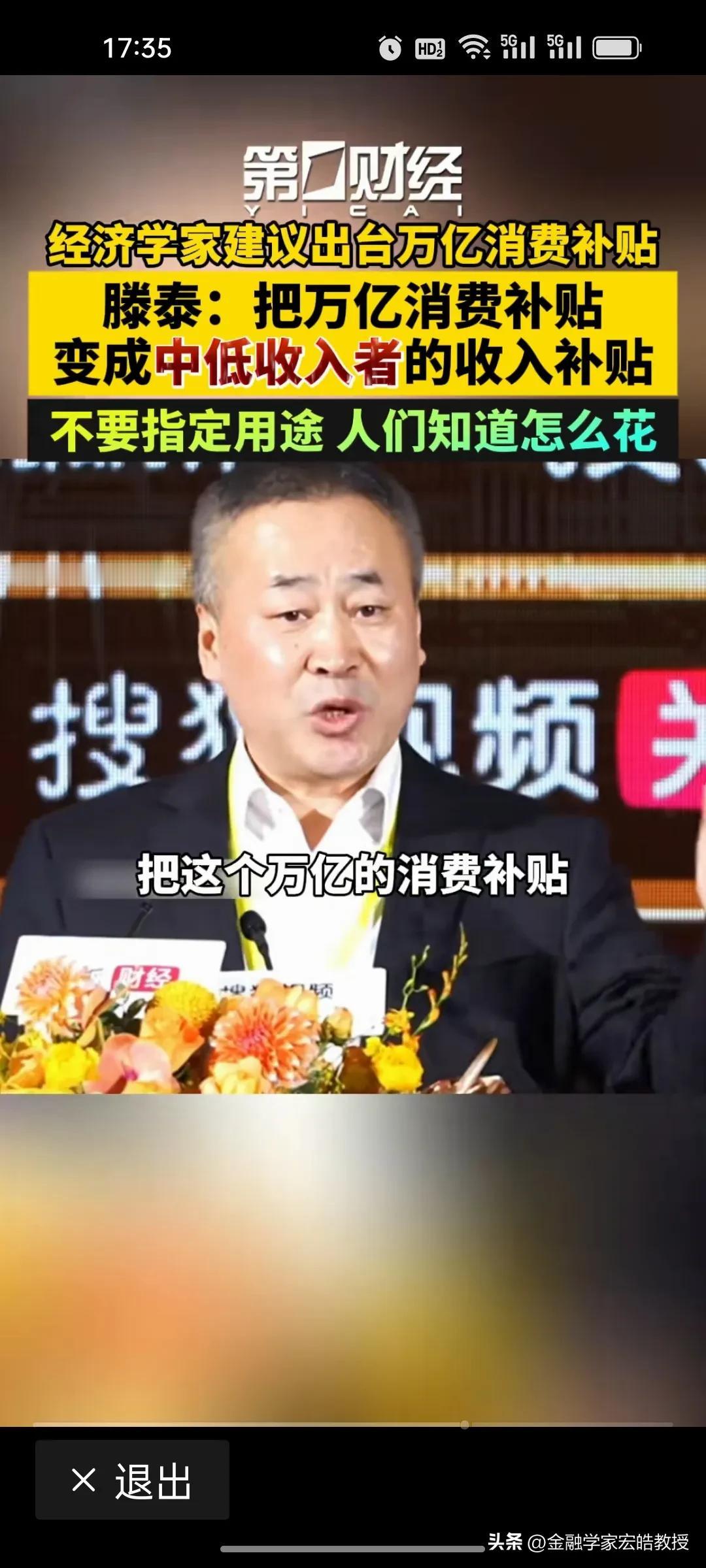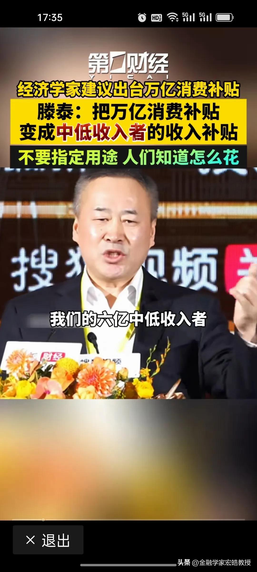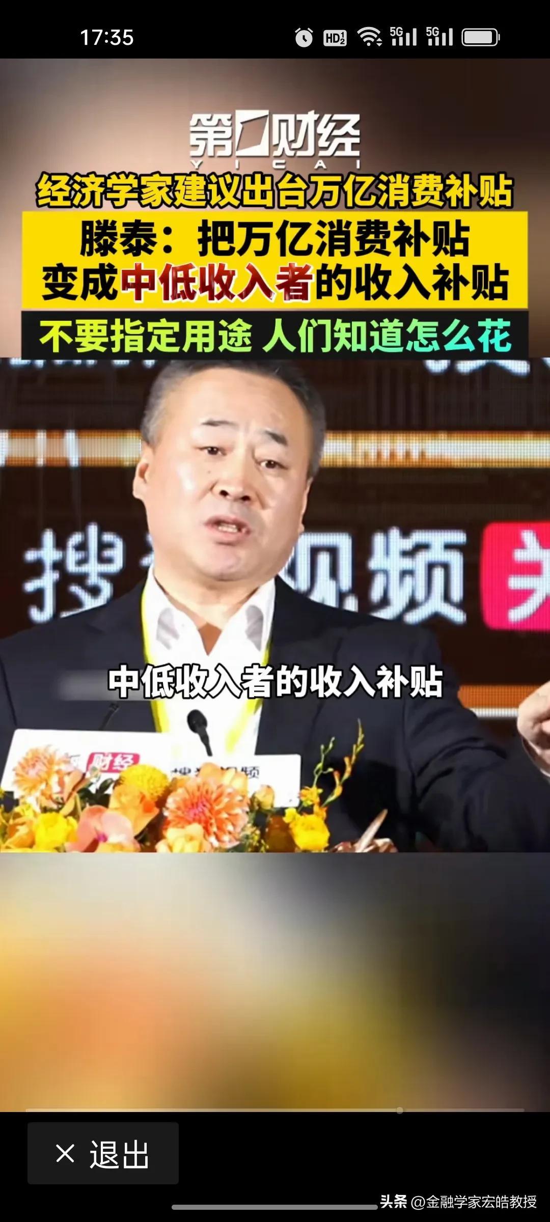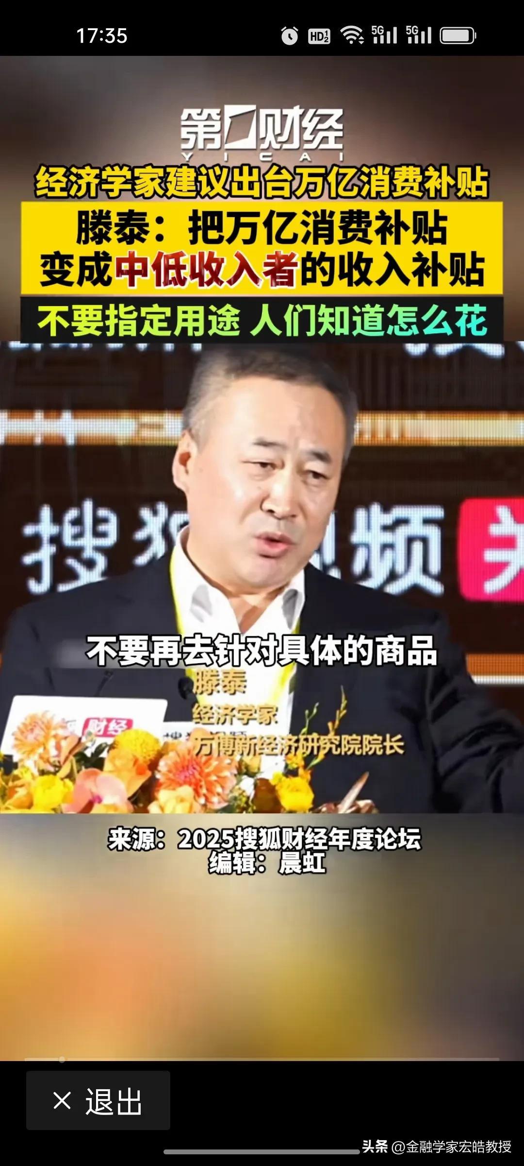 经济学家滕泰给提振消费支招,建议出台万亿消费补贴,要变成中低收入者大收入补贴,不要指定买家电买汽车,大家知道怎么花。一万亿补贴能带来三万亿需求增长,带动2-3个电的GDP增速。 比如,今年中央已经发了3000亿的消费补贴。带动相关商品消费额超过2万亿。未来要形成“补贴 - 消费 - 增长 - 收入 - 再消费”的良性循环,继续补贴是少不了的。 滕泰说不限用途的消费券,确实更加实用,满足了各方面的消费需求,不再仅限于电子产品,家电和汽车,也能让其他消费品行业从补贴中获益。 另外,要扩大消费还有两个重要的关键点,一个就是增加工资收入,大家收入提高,自然消费动能就会释放。二是增加财产性收入,现在买房子不能增值,很多人当年买房在高位,现在房价跌了,还要继续还房贷,自然提不起消费兴趣,如果能在理财市场能赚到钱,不管买股票还是买基金,都有钱赚,能覆盖房贷车贷,那么老百姓腰包鼓了自然都会去消费。