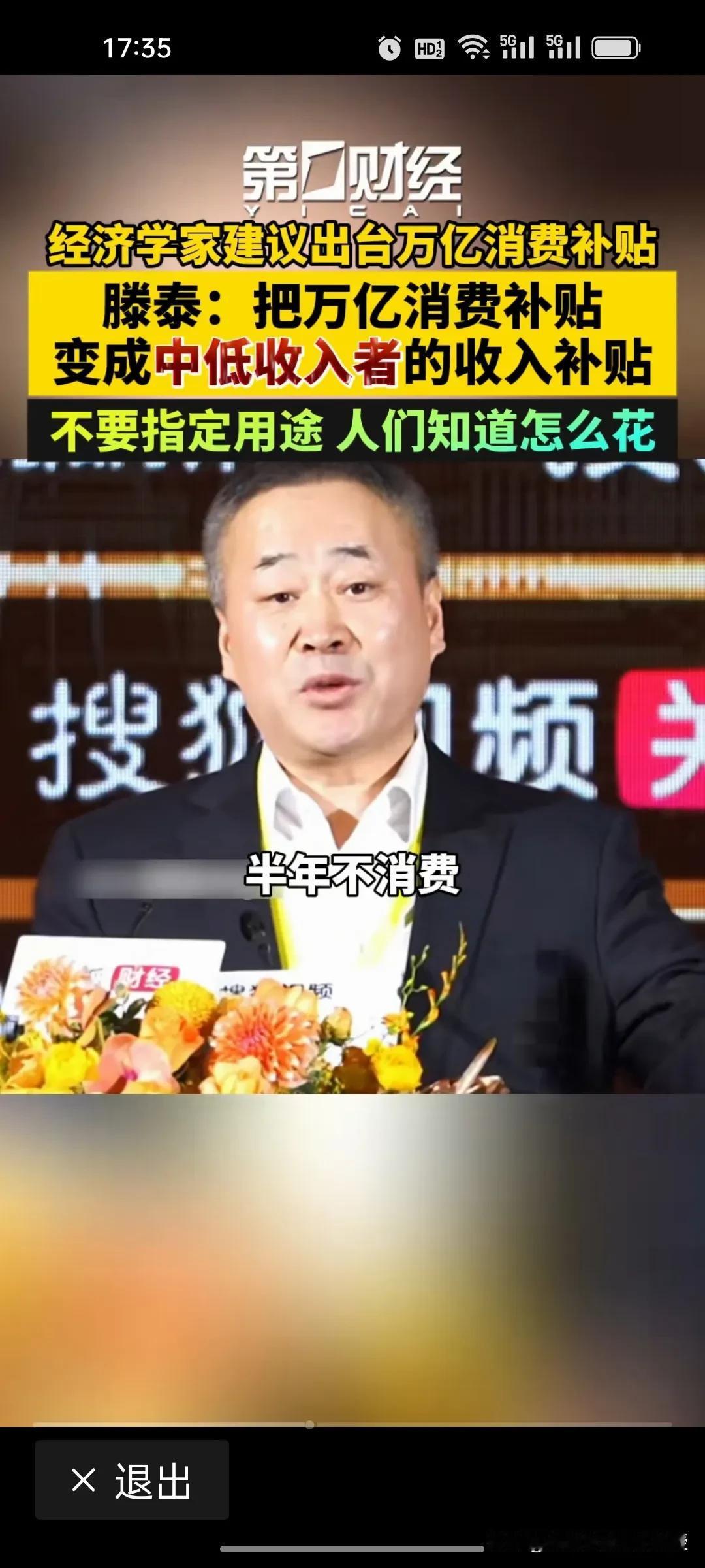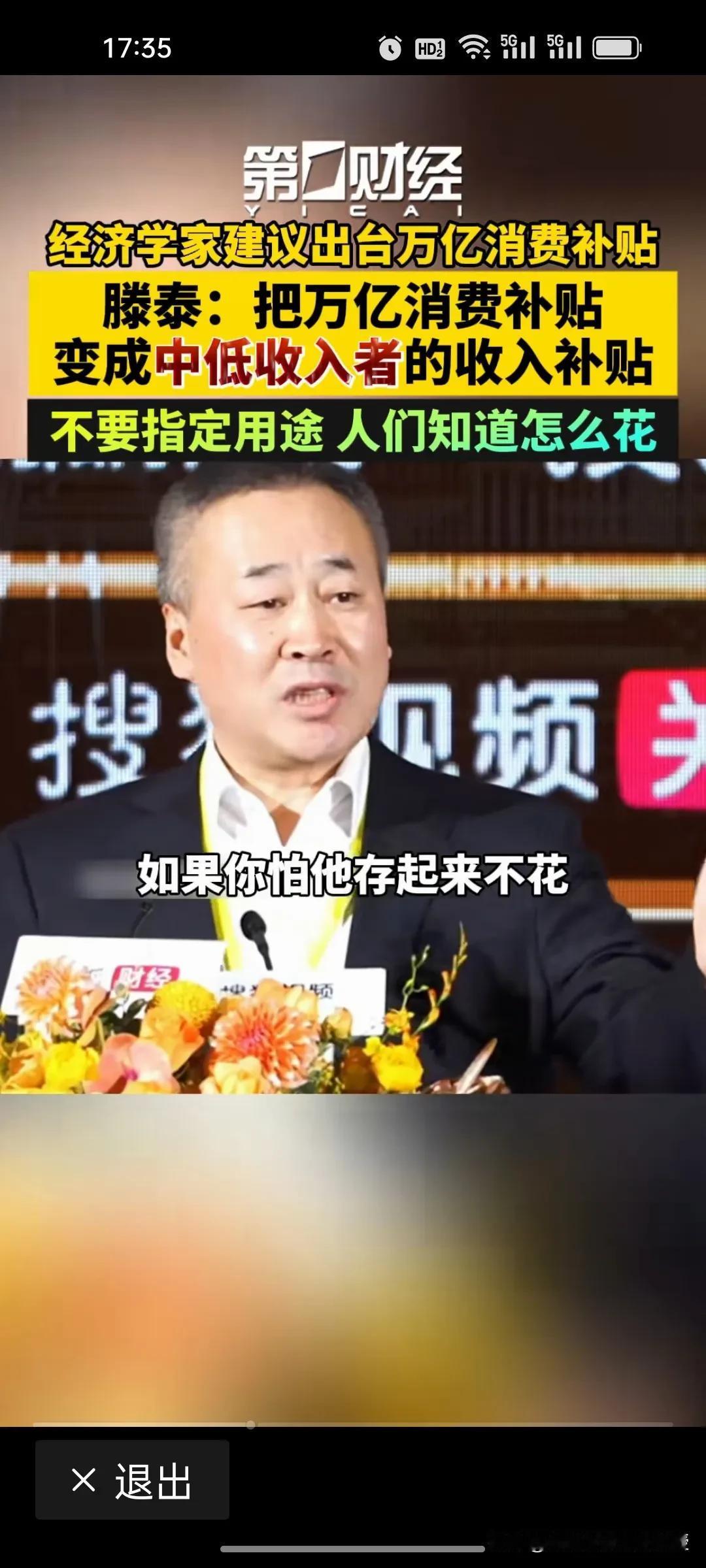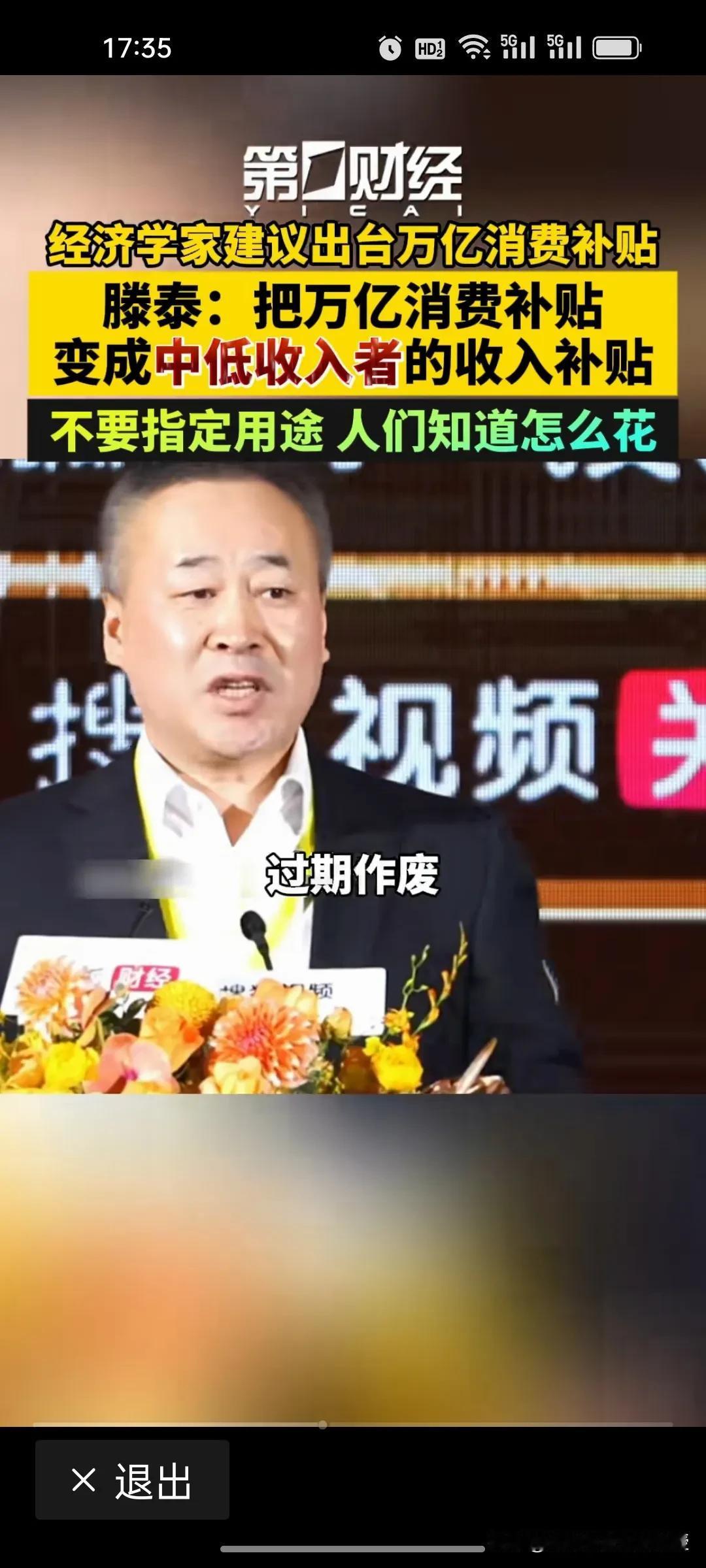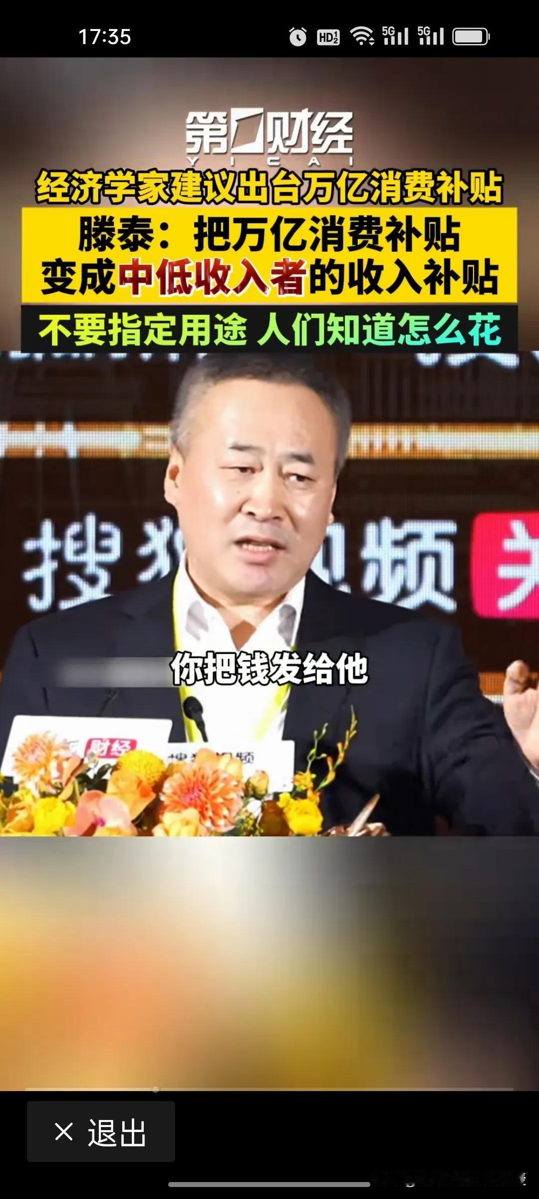 经济学家滕泰给提振消费支招,建议出台万亿消费补贴,要变成中低收入者大收入补贴,不要指定买家电买汽车,大家知道怎么花。一万亿补贴能带来三万亿需求增长,带动2-3个电的GDP增速。 比如,今年中央已经发了3000亿的消费补贴。带动相关商品消费额超过2万亿。未来要形成“补贴 - 消费 - 增长 - 收入 - 再消费”的良性循环,继续补贴是少不了的。 滕泰说不限用途的消费券,确实更加实用,满足了各方面的消费需求,不再仅限于电子产品,家电和汽车,也能让其他消费品行业从补贴中获益。 另外,要扩大消费还有两个重要的关键点,一个就是增加工资收入,大家收入提高,自然消费动能就会释放。二是增加财产性收入,现在买房子不能增值,很多人当年买房在高位,现在房价跌了,还要继续还房贷,自然提不起消费兴趣,如果能在理财市场能赚到钱,不管买股票还是买基金,都有钱赚,能覆盖房贷车贷,那么老百姓腰包鼓了自然都会去消费。