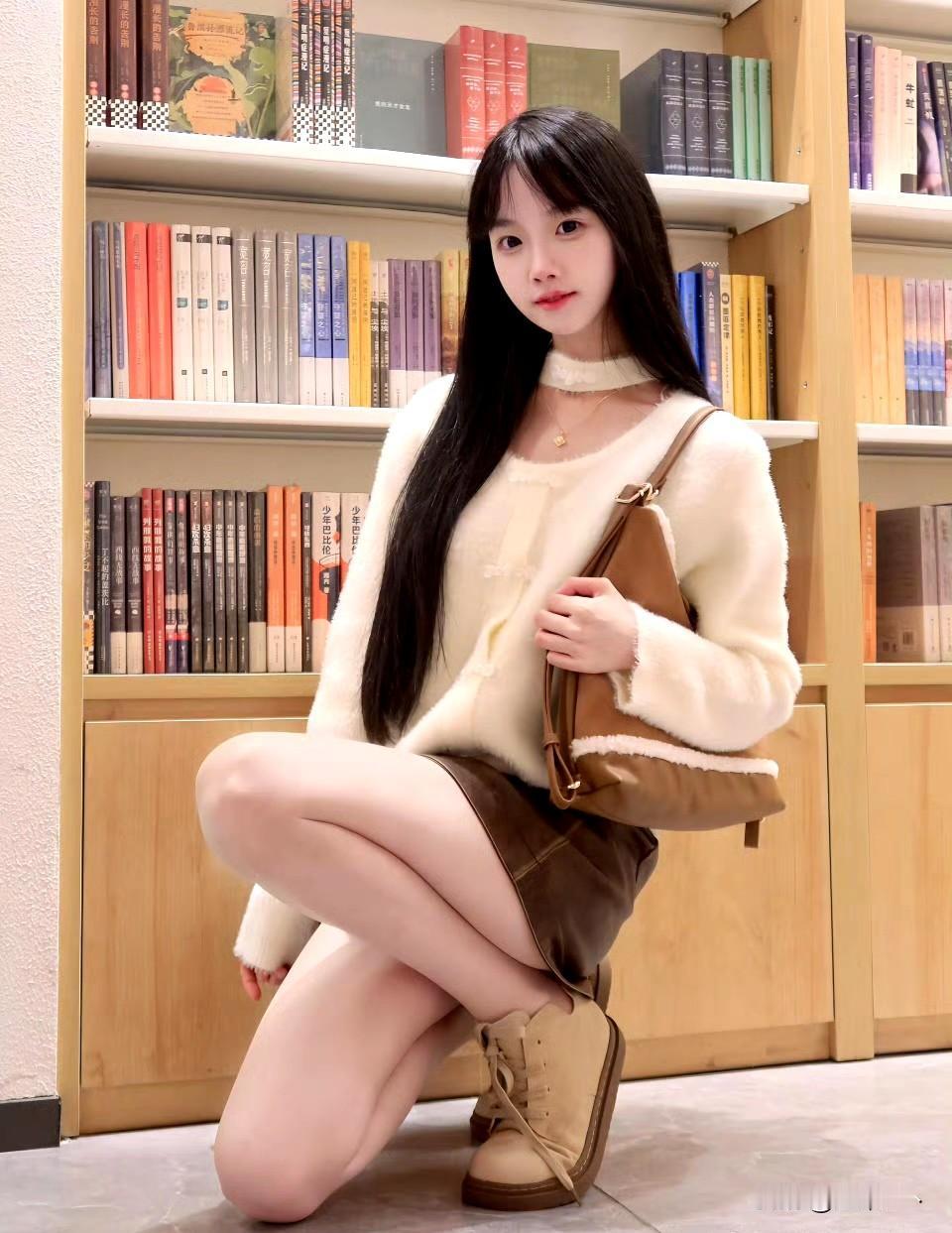 图书馆今日穿搭 奶fufu的毛绒毛衣自带温柔滤镜,领口的小设计甜而不腻,搭配棕褐色短皮裙,又甜又有点小辣~浅肤色丝袜衬得腿又细又直,配上同色系厚底靴,显高显瘦一把拿捏! 包包选了焦糖棕毛绒拼接款,毛球装饰直接戳中少女心,和整体色系呼应得刚好~不管是在温馨小店还是书店角落,这身都自带软萌氛围感,是冬天里让人一眼心动的温柔系穿搭没错啦!毛衣怎样穿搭才能让人眼前一亮呢 穿搭 没有人可以拒绝甜妹 可爱 绞花针织衫穿出时髦感