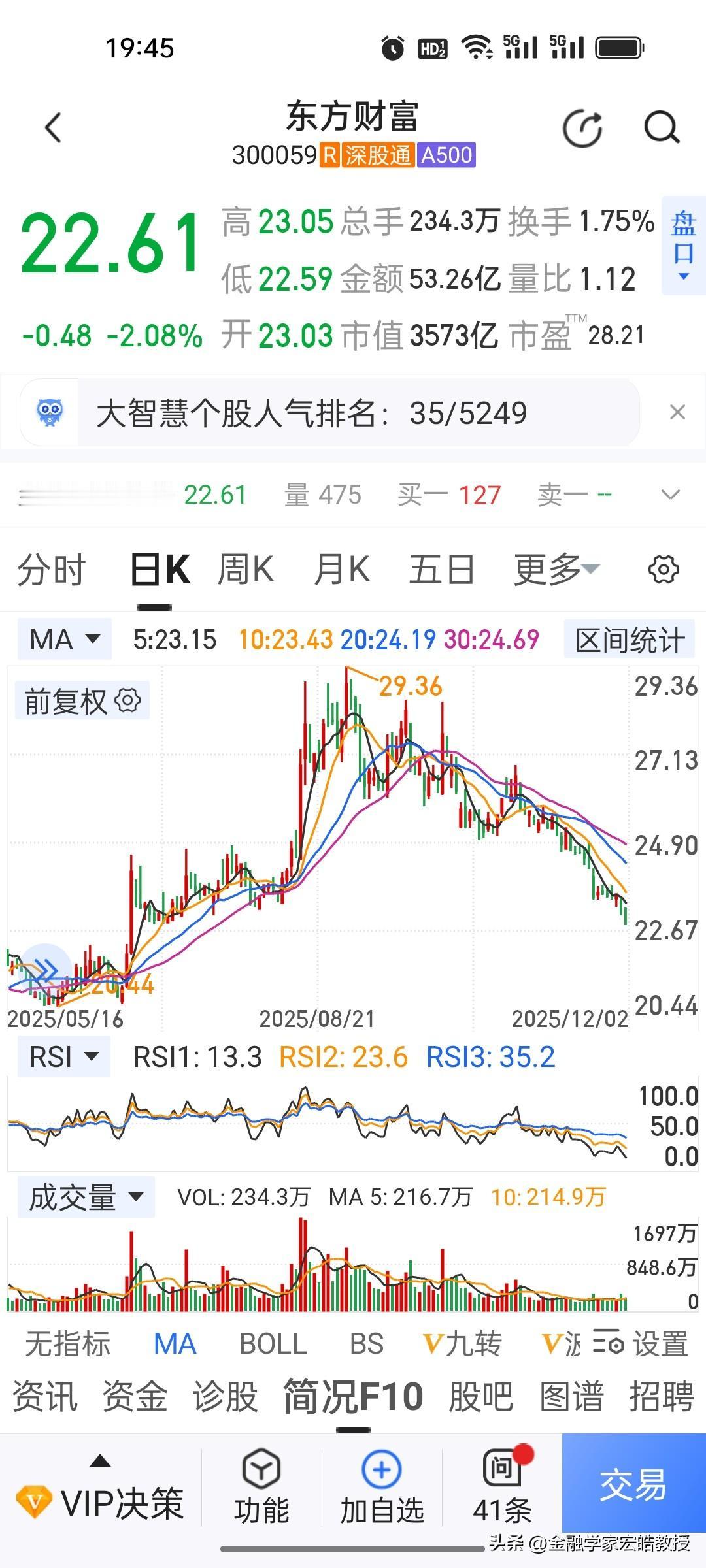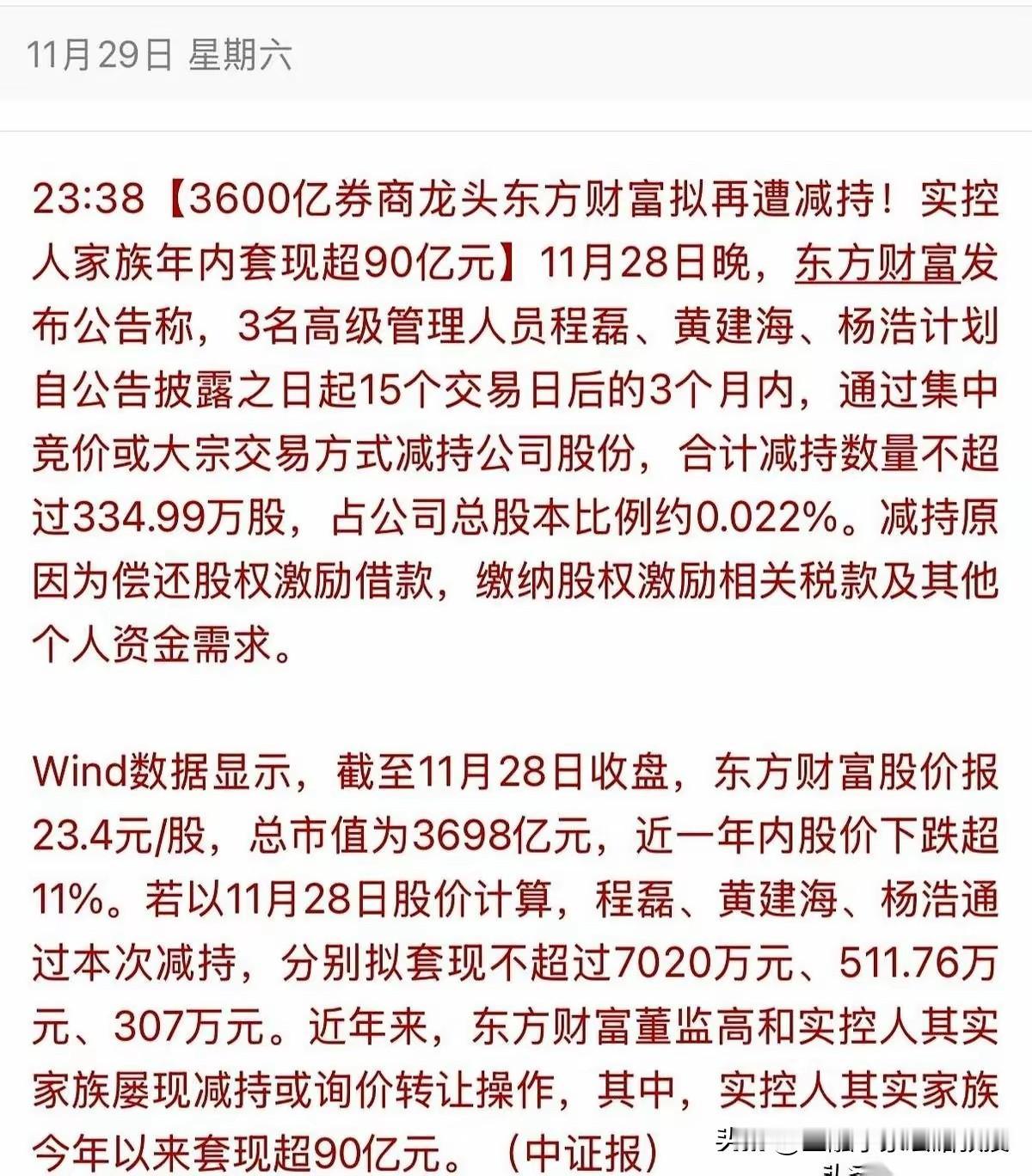 刘纪鹏看到东方财富这样高频率减持也会一声叹息啊!东方财富老板其实今年就已经套现了90亿,现在轮到高管继续减持了,三名高管减持又要335万股,现在东方财富股价已经跌回了今年7月份的水平,自今年8月最高29元,已经跌去了30%,在股价连续阴跌四个月的这个阶段低点位置,股东们不增持加强中小投资者信心,反而雪上加霜,组团减持,101万中小投资者该怎么办?刘纪鹏教授近期一句话说的对,股市的核心问题还是要解决制度问题啊!