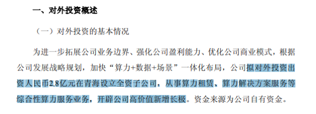 2025年8月,三人行宣布拟出资2.8亿元,在青海设立全资子公司“青海三人行绿能智算科技有限公司”(暂定名),专注从事算力租赁相关业务,重点布局国产GPU为主的算力租赁业务和相关的数据中心业务,开辟公司高价值新增长极。