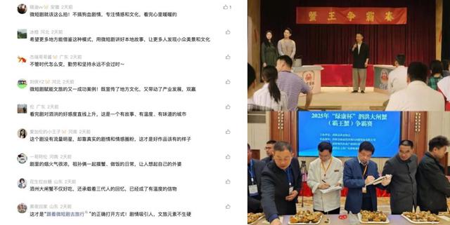 在热度转化上,剧集构建了高效的线上+线下联动机制。线上采用先网后台模式覆盖全受众,通过“剧情种草+MV造势+攻略分享”的矩阵式传播持续放大曝光;线下同步启动2025“绿康杯”泗洪大闸蟹(霸王蟹)争霸赛,泗洪马拉松以“跑马品鲜”为主题,将观众观看兴趣延伸为实际出行意愿。这种联动让剧集热度与当地特色产业深度绑定,形成剧情带火产品,产品反哺IP的良性循环。