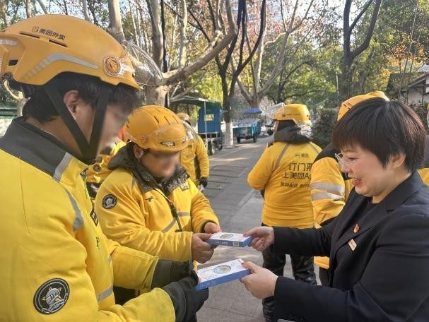 “真的很感谢!现在天冷了,这手套、耳罩我们刚好能用上,你们工行的服务真是贴心!”外卖小哥高兴地从志愿者手中接过防寒用品,连声道谢。