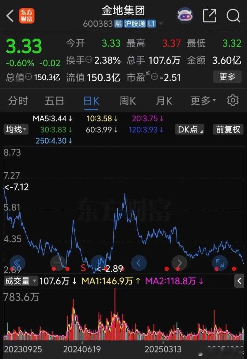 金地集团这波下跌也很惨烈,最近持续阴跌,比大盘弱比什么股都弱,不仅早就跌破了4月17日位置,而且6月份低点也早早跌破了,今天继续下跌0.6%收盘价创这波牛市新低,离去年7月份低点已经不是很远了,市净率再次跌破0.30,现在仅仅只有0.28堪比港股市场,很多房地产股票不会跌成这样子的,不少还走了一波牛市,可能股民对金地集团真的没有信心了,23年年报净利润还是盈利的,可是最近两年每个季报都是亏损,龙头万科A又经常出利空,很多股民已经坚持不住了,惨不忍睹。