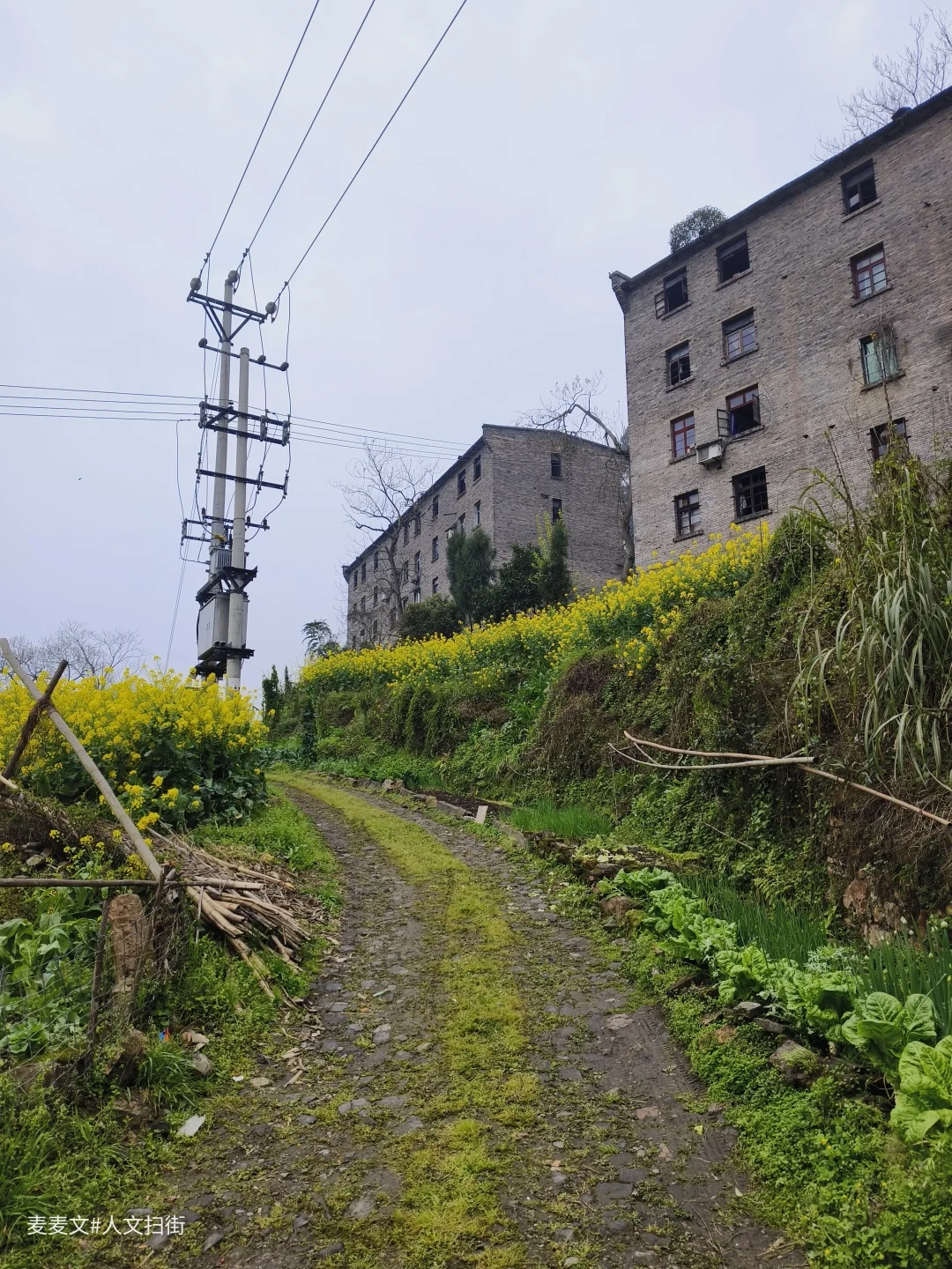 麻柳滩的道路并不宽敞,两旁长满了青苔,偶尔还能看到几株不知名的小花顽强地绽放。不远处的烟囱静静伫立,虽不再浓烟滚滚,却曾见证过当年热火朝天的生产景象。