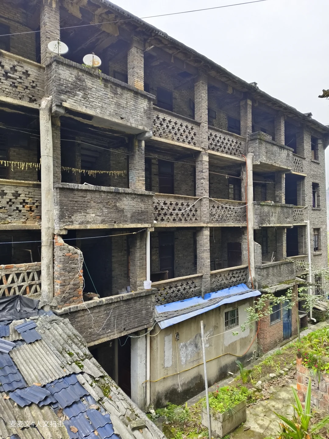 一大片青砖房与红砖房错落有致地排列在山坡上。青砖的房屋泛着古朴的色泽,历经风雨侵蚀,墙面的纹理诉说着过往的故事。红砖房则带着一抹热烈的色彩,在岁月中虽有斑驳,却依旧倔强地挺立。