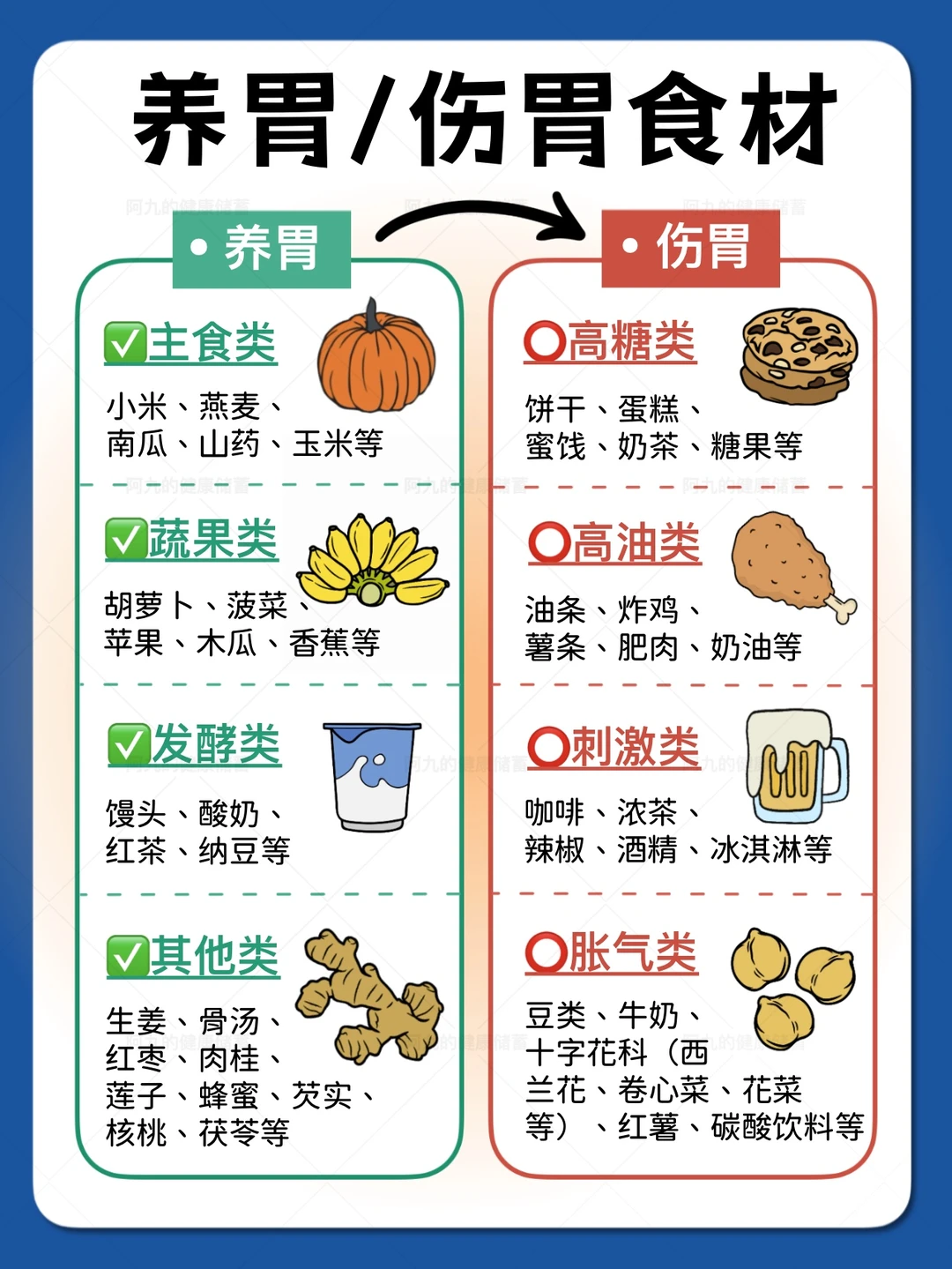 阿九还总结了一些养胃和伤胃的食材,也分享给大家!➡️图4