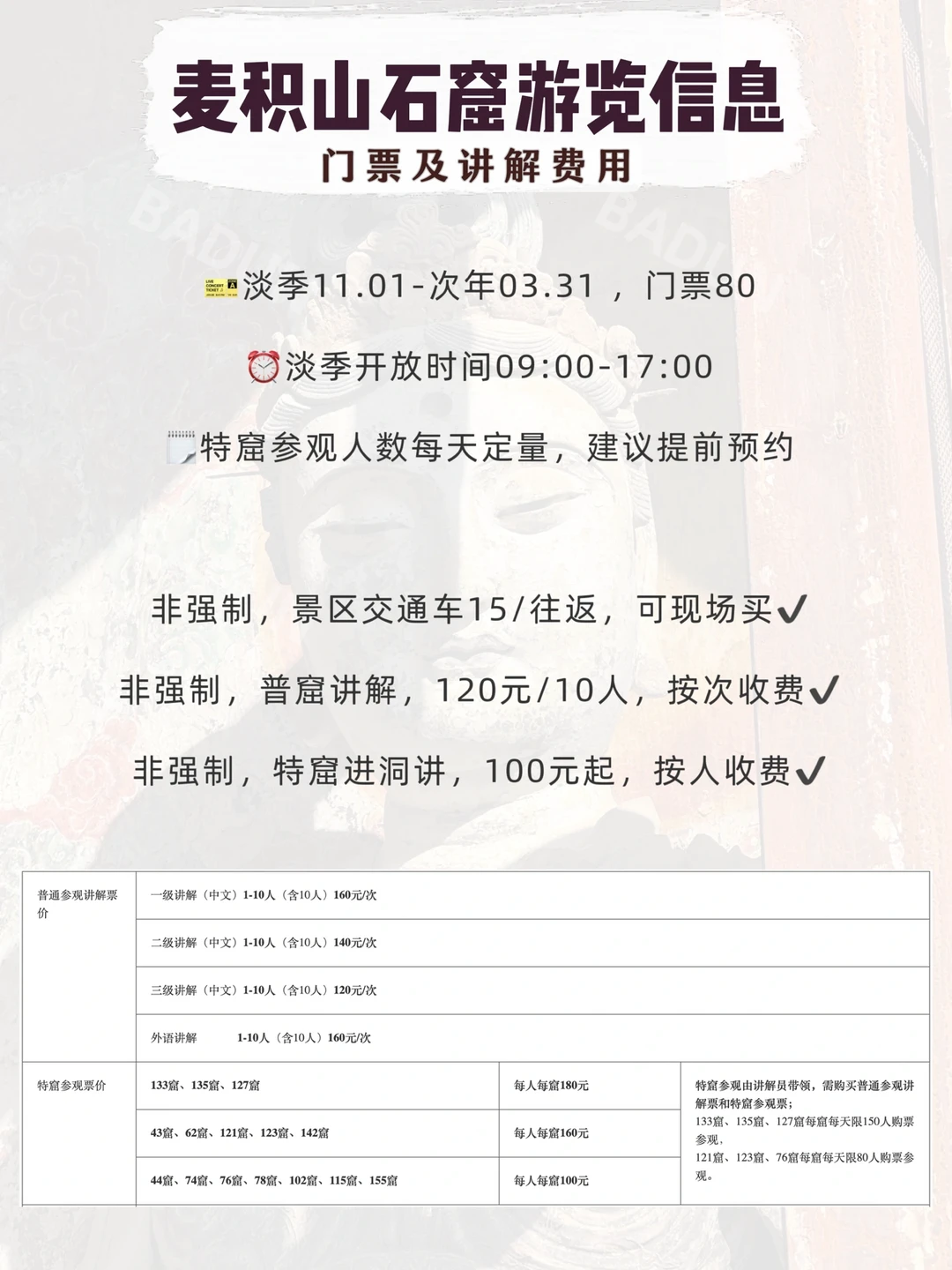 📷讲解和特窟是两个内容!讲解不包含特窟,特窟又分好多窟,不同窟不同价。