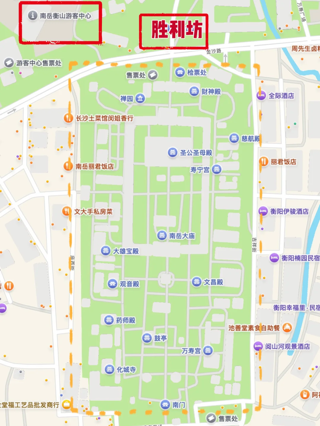 ↪️如果是从衡山火车站或高铁站过来的公共交通游客,都会路过南岳大庙正南门。
