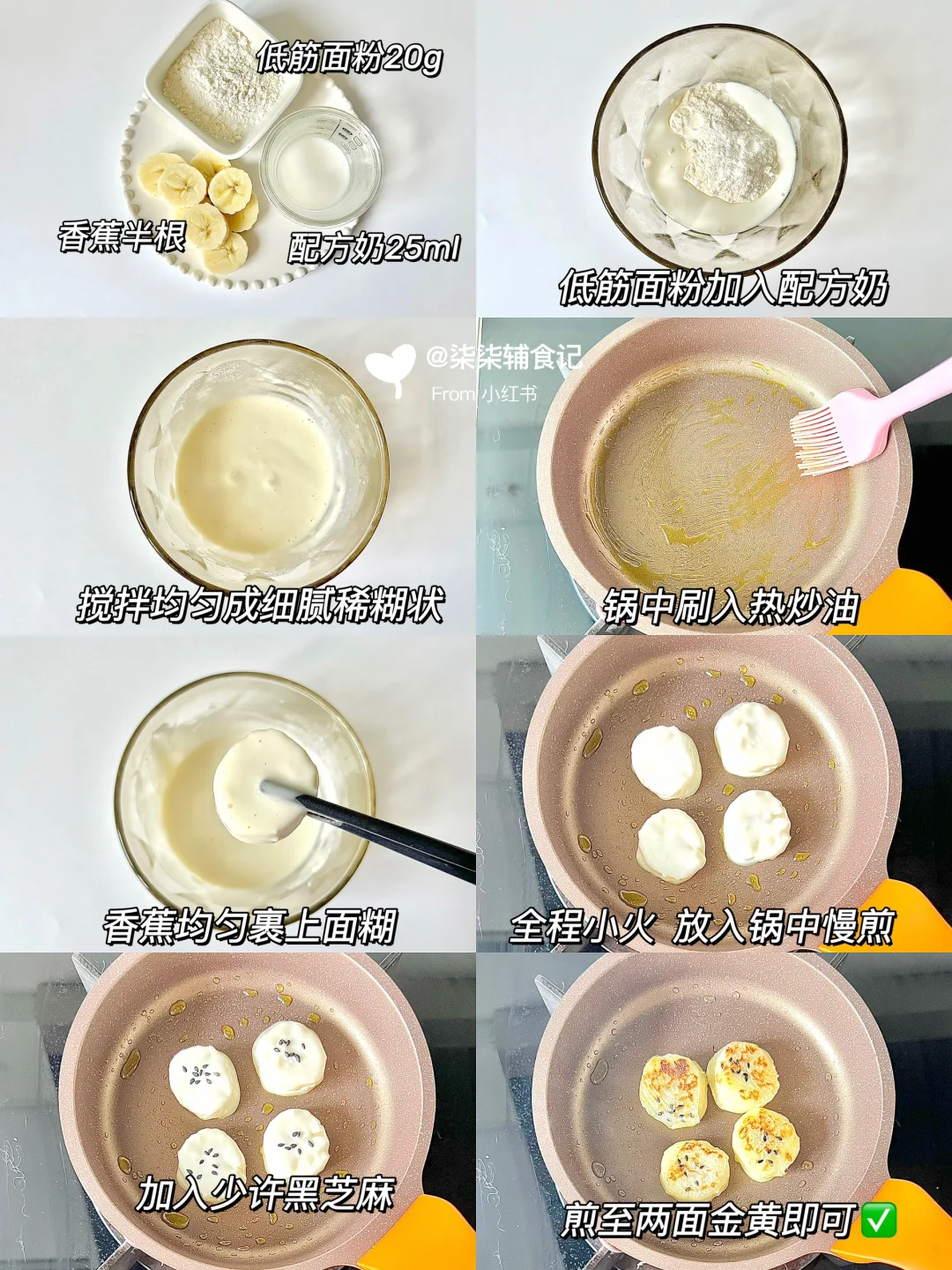 香蕉半根➕低筋面粉20g➕配方奶25g