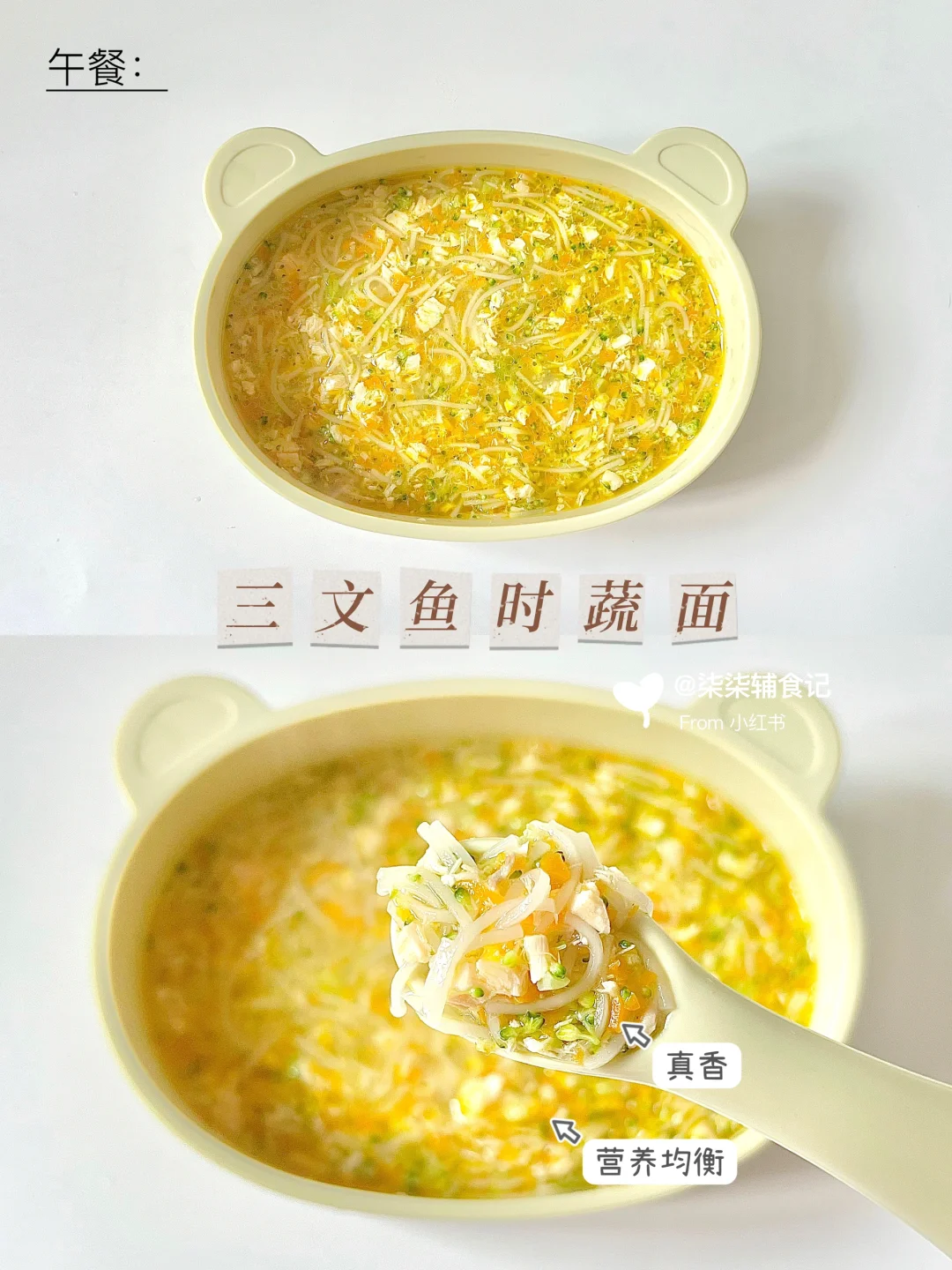 午餐三文鱼时蔬面~营养均衡,柒柒很爱吃哦,没一会儿就吃光光啦~[大笑R][大笑R]超级棒👍