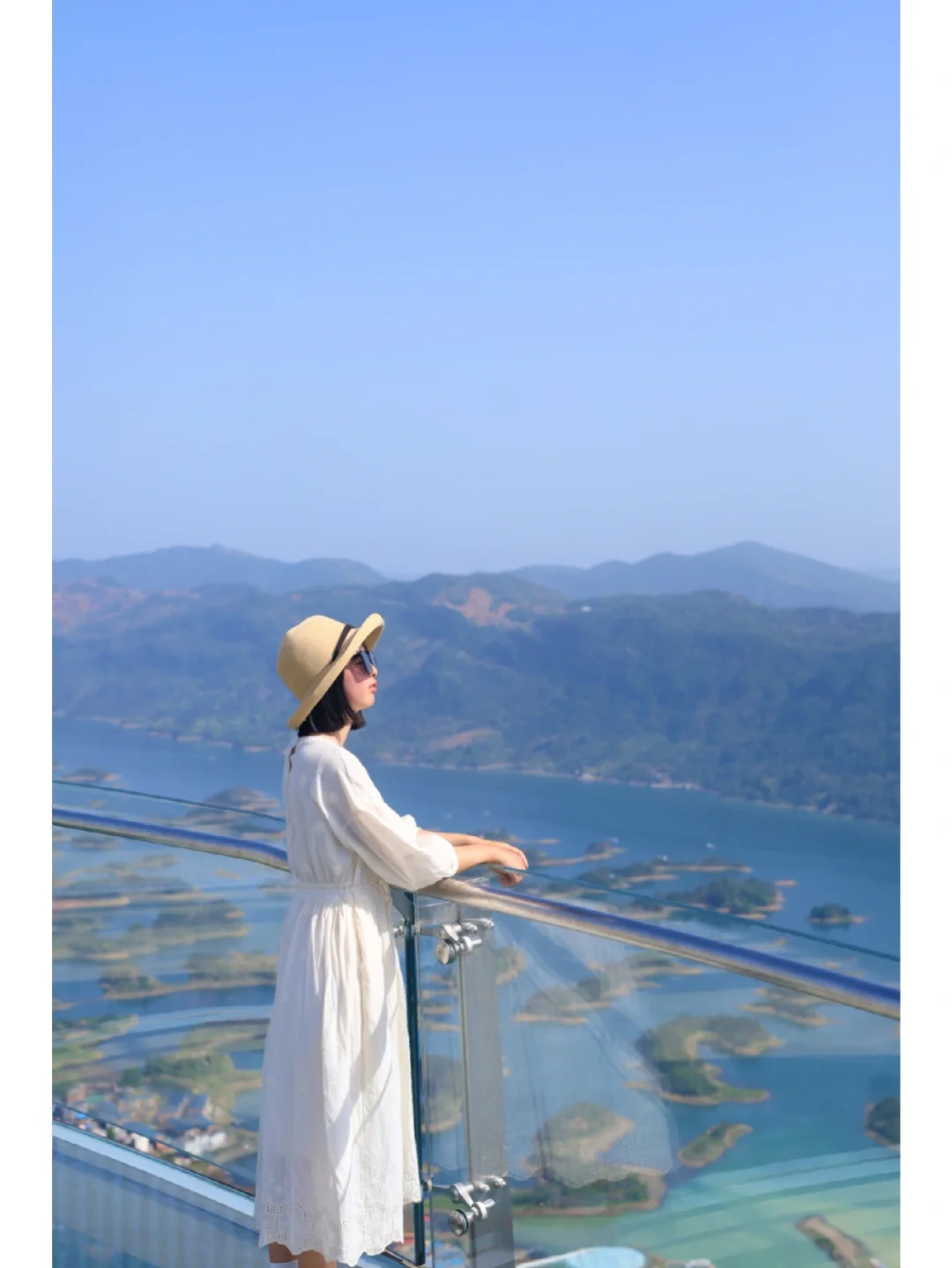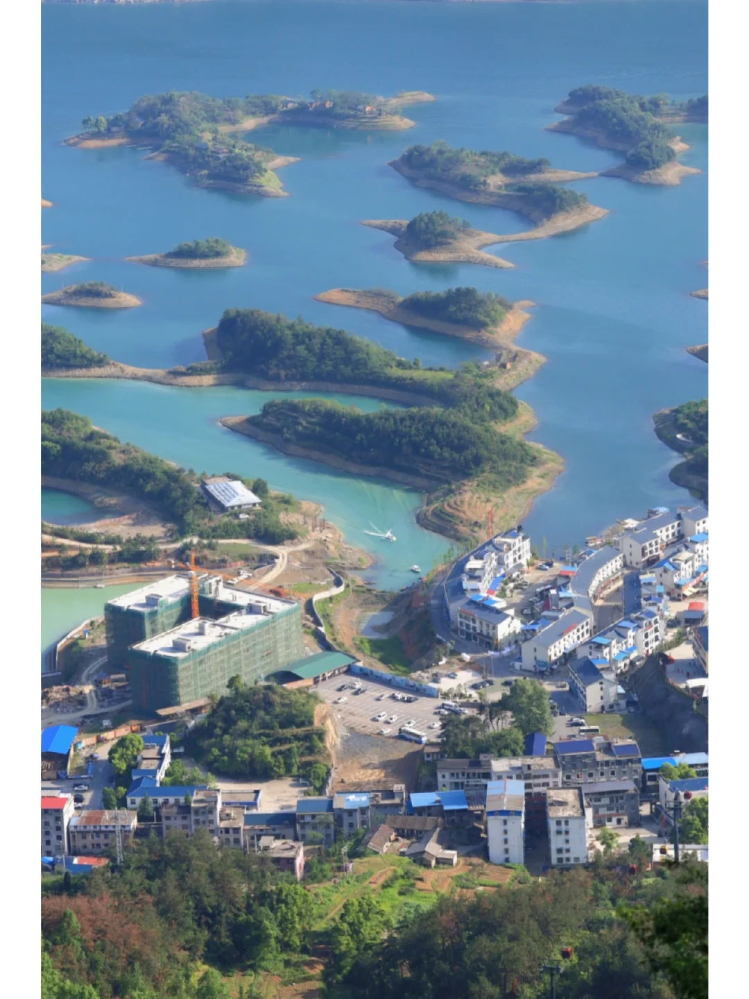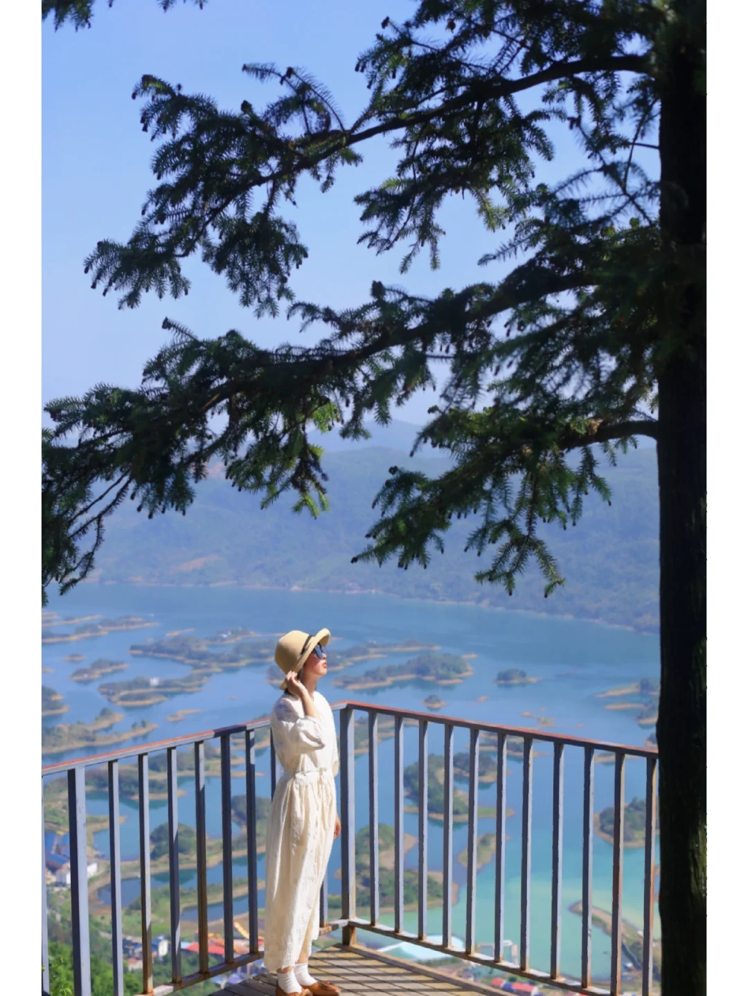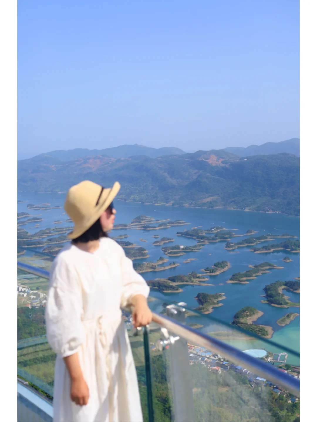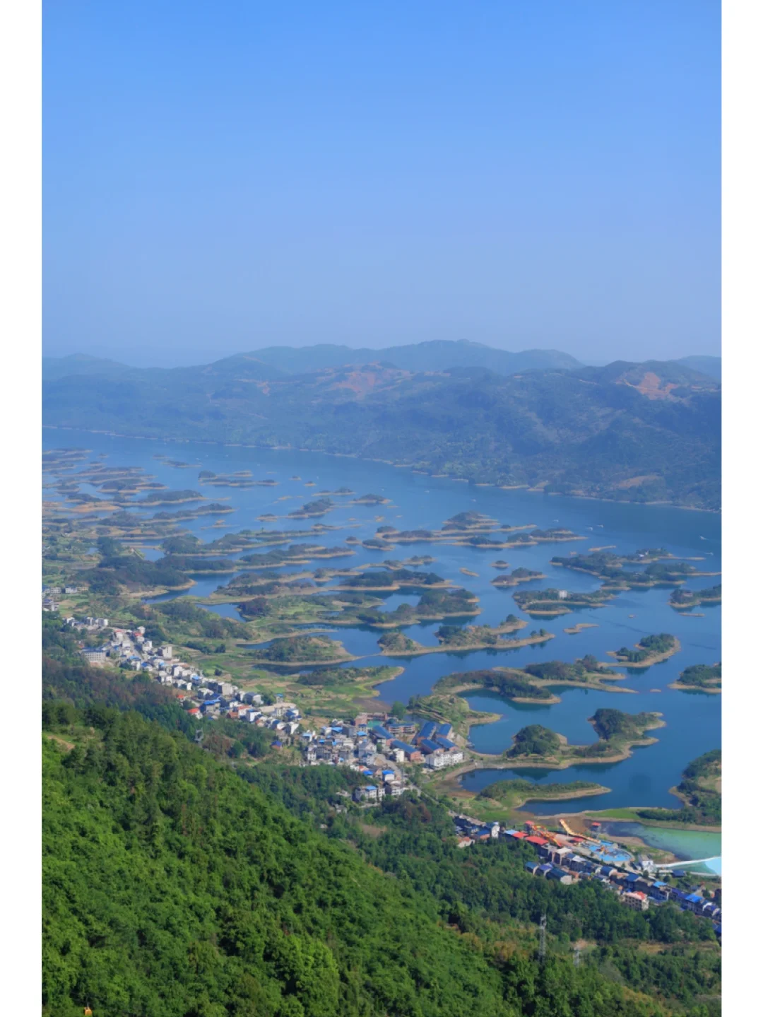 ✔️从山顶俯瞰仙岛湖星罗棋布的小岛视野绝了,蓝绿色的湖面像极了海边