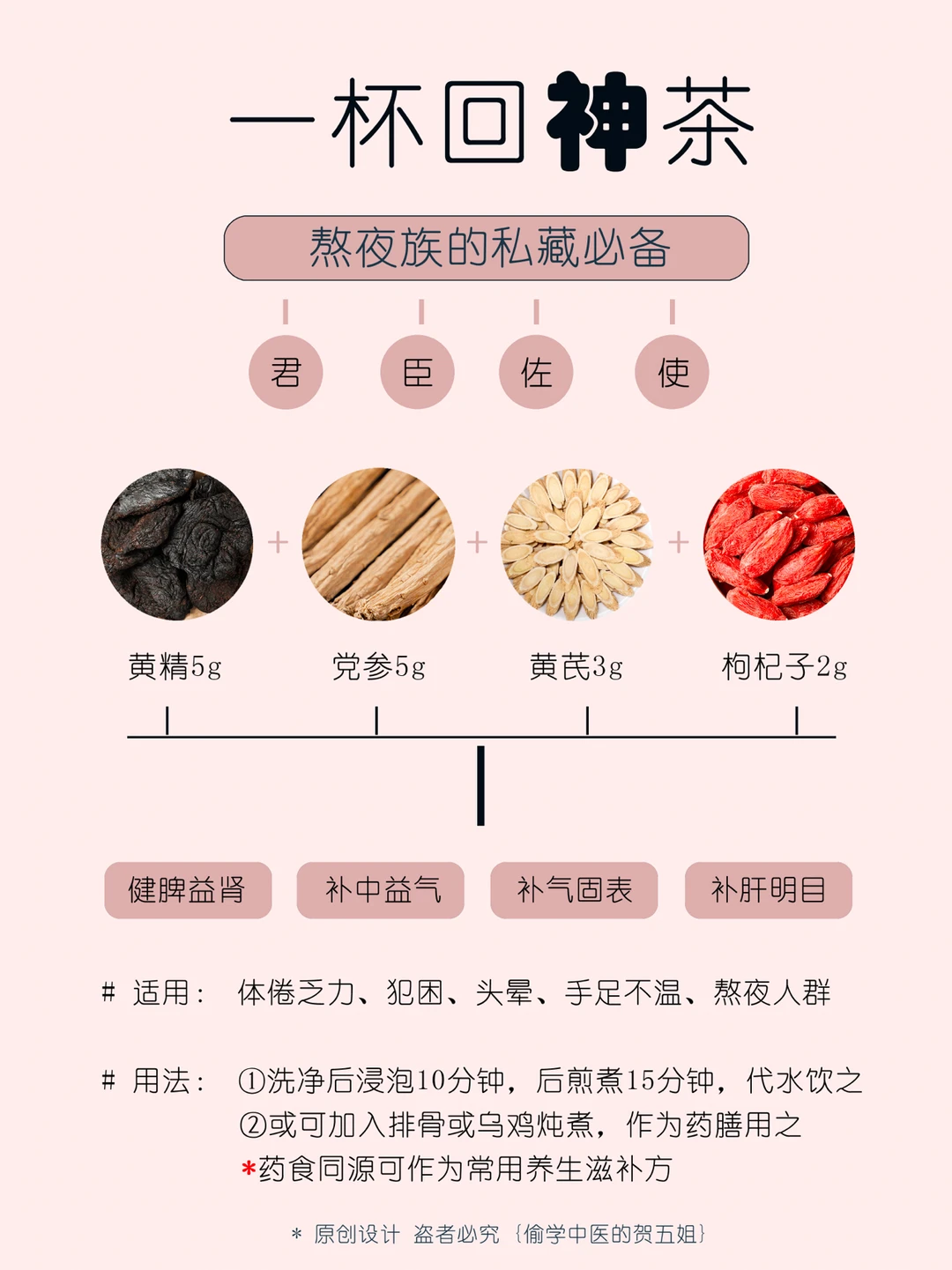 今天的“回神茶”是贺五姐的私藏养生方,配伍方可当茶饮也可煲汤,味道甘甜~草本浓郁~是我觉得真心好喝且实惠有用的宝藏👏👏👏