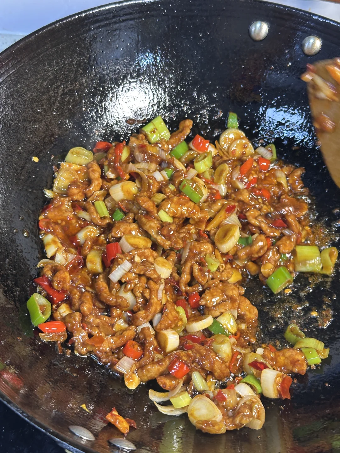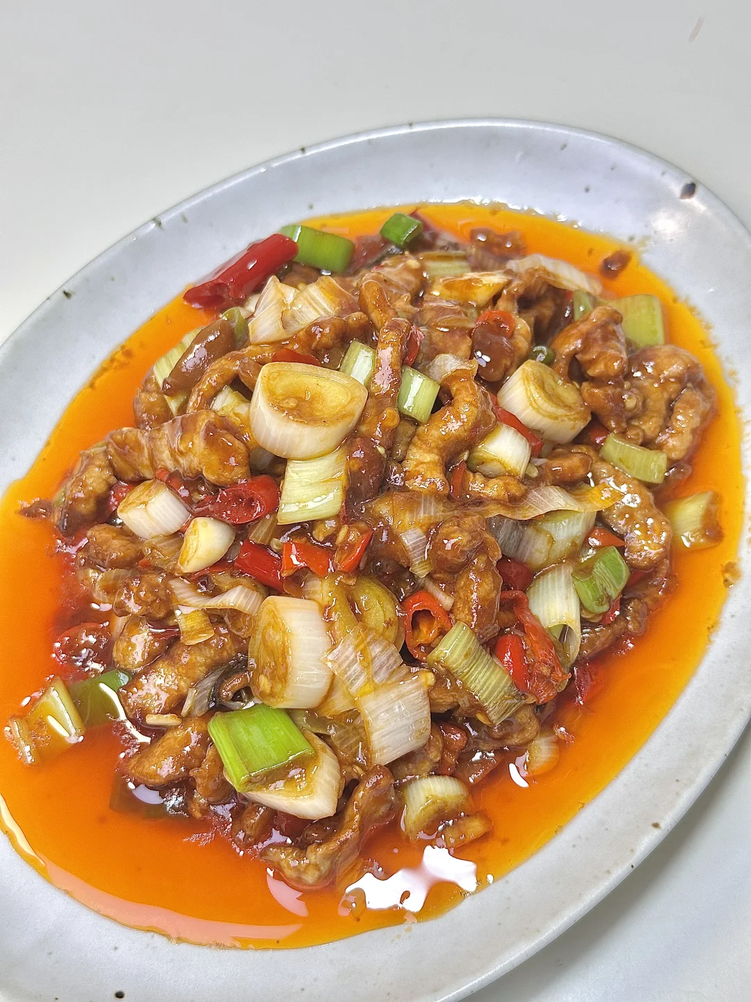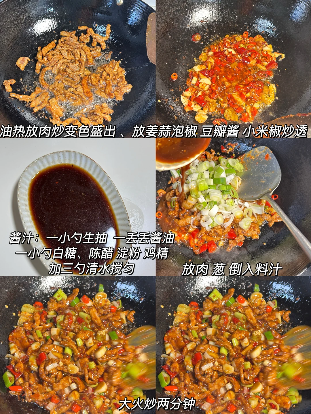 鱼香肉丝 川渝版yyds! ✨食材:肉 大葱 姜蒜 泡椒 豆瓣酱 小米椒 1️⃣:调料汁:碗里加入一小勺生抽、少许酱油,一小勺白糖、陈醋、淀粉和鸡精,再加入加入三勺清水,搅拌均匀备用。 2️⃣:热锅放油,油热后放入肉片翻炒至变色,盛出备用 锅中留底油,放入姜、蒜、泡椒、豆瓣酱、小米椒,炒出香味。将炒好的肉放回锅中,加入葱段,倒入调好的料汁,大火快速翻炒约两分钟。