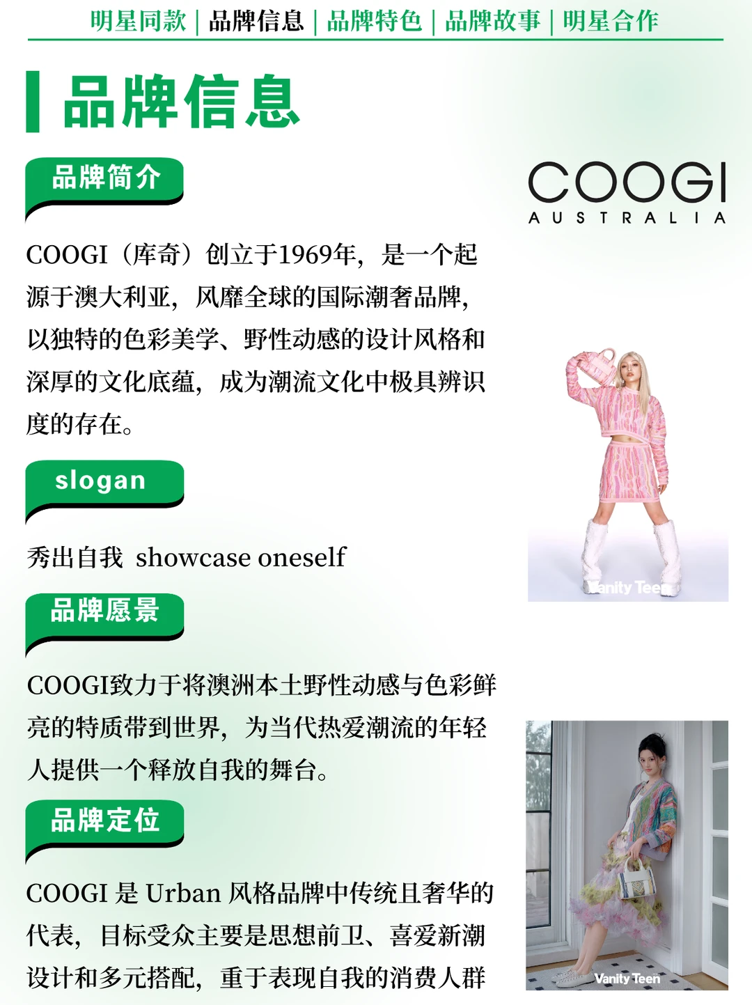 [向右R] 品牌简介:COOGI(库奇)创立于1969年,是一个起源于澳大利亚,风靡全球的国际潮奢品牌,以独特的色彩美学、野性动感的设计风格和深厚的文化底蕴,成为潮流文化中极具辨识度的存在。