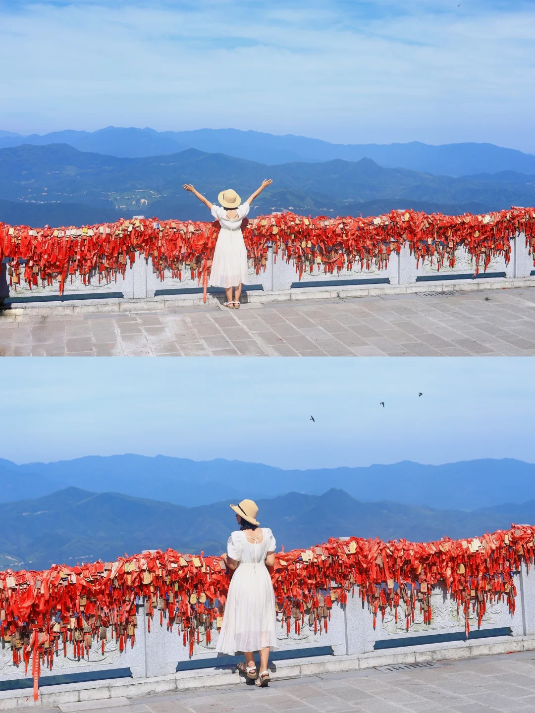 清晨坐缆车上山祈福,看山峦叠嶂,运气好还能看到云海