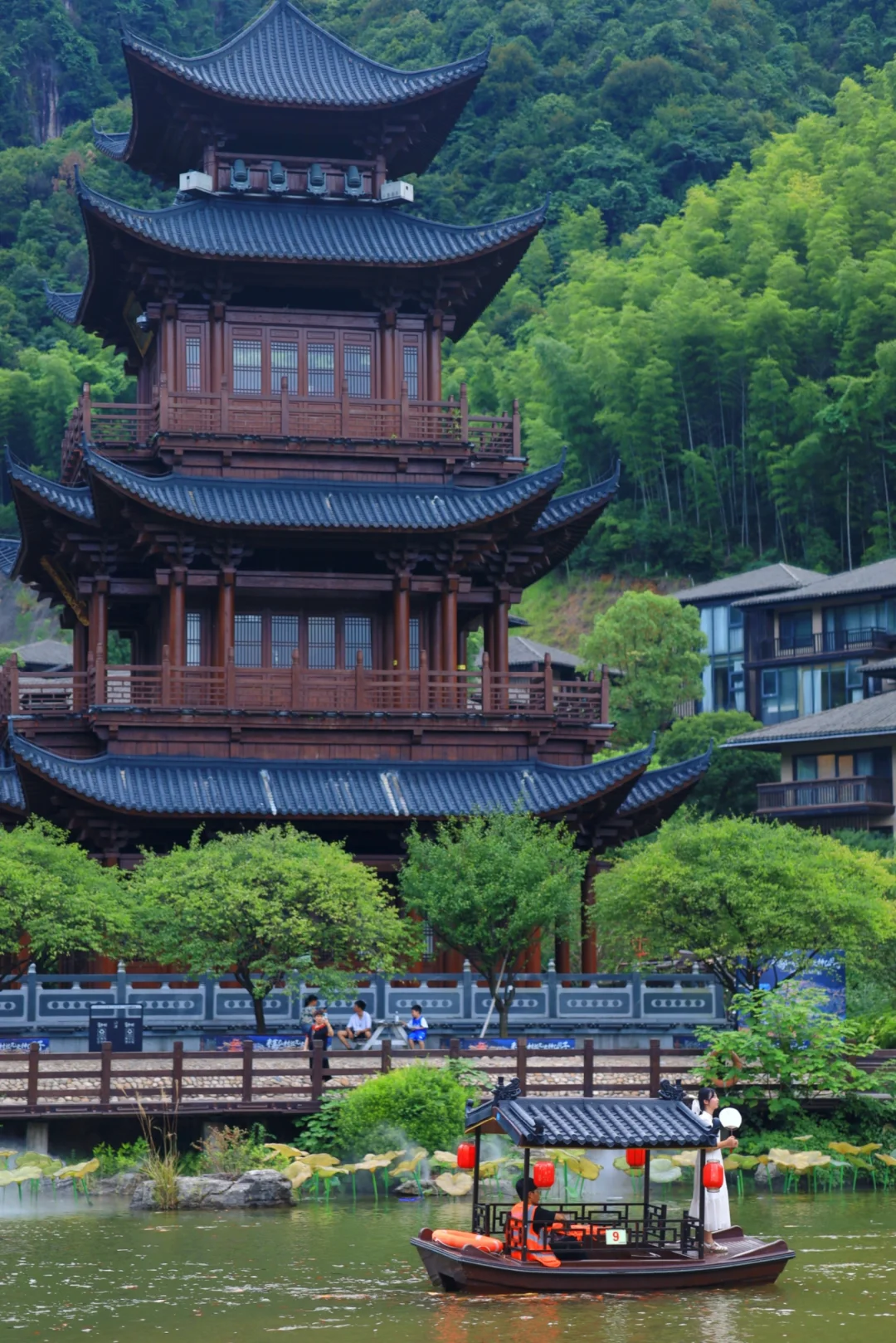 ✔️古风古韵的汉唐建筑,绿意盎然的竹海秘境,穿一身汉服漫游古风街道,游船入画赏仙湖美景,一秒穿越盛唐时期