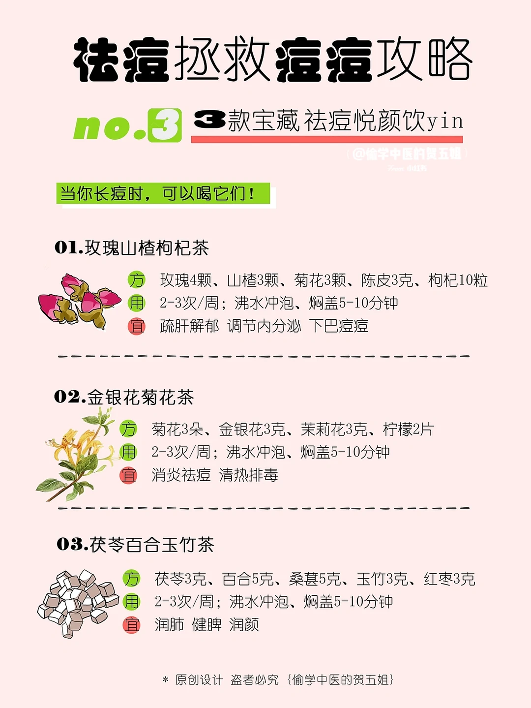 1⃣️玫瑰山楂枸杞茶:疏肝解郁,养下巴痘