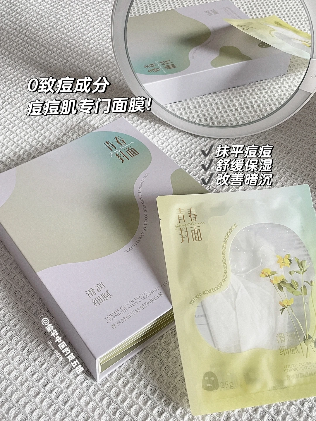 🔍痘痘肌选择护肤品时,成分是关键!若单品中添加了致痘成分,反而会适得其反,让皮肤焖痘、毛孔堵塞‼️‼️安利一款痘痘肌专门面膜,青春封面净肤面膜,它在某修全绿配方,添加了百永根、积雪草、马齿笕等15种祛痘、修复、维稳植物精华,无刺激性让痘痘一边维稳一边修复,痘痘宝子们,可以get这款祛痘养肤的“亲妈”👍👍