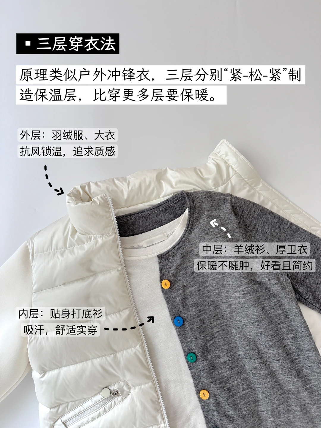 内层保温吸汗,中间保暖好看,外层抗风御寒。