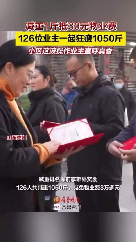 这年头,物业费还能“瘦”着交!山东德州一小区最近玩出新花样:减重1斤抵扣30元物业费。三个月下来,126位业主狂减1050斤,物业费减免三万多! 冠军大哥减了25.2斤,省下756元,从“大肚哥”变身运动达人;一位阿姨甩掉18斤,告别减肥药,成了小区“励志奶奶”。网友直呼:这作业全国物业都得抄! 物业说,这是响应“体重管理年”,鼓励科学减重。这下好了,业主健康了,物业费还少了,楼下饭馆老板却愁了:“顾客都瘦了,我的生意咋办?”[偷笑] 小区减重抵物业费