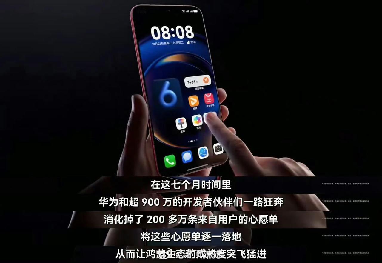 这就是赤裸裸的现实啊: 7月,鸿蒙5终端用户1000万 8月,鸿蒙5终端用户1200万 9月,鸿蒙5终端用户2000万 10月,鸿蒙5终端用户2200万 11月,鸿蒙5和鸿蒙6终端用户破2700万。 鸿蒙系统可以说是一款“我们看着长大”的国民系统。从2019年问世,到2024年由内到外焕然一新的鸿蒙5,再到今年的鸿蒙6,不仅有很多的亮点而且完成度也越来越高。 作为华为用户,我深感自豪。鸿蒙6的实用体验,让我越用越依赖。升级鸿蒙6后,丰富而丝滑的体验感更是深得我心。 频繁出差中,负一屏成了我的得力助手。查快递不再需翻多个购物APP,右滑即见物流进度,开会间隙扫一眼,快递到哪了一目了然,省时省心。地库寻车功能更是贴心,大型商场地下车库找车难,鸿蒙6自动记录停车位置,返回时点开负一屏导航,告别瞎转悠。 国庆泰国之旅,天际通带来惊喜。未提前买电话卡,落地秒连网络,报平安、叫车顺畅,还能开热点共享,每日流量费不足10元,比当地卡更划算。景点发视频、传照片,网络稳定不卡顿。 鸿蒙6无花哨功能,却精准捕捉日常与旅行需求,贴心又强大。国产系统的温度,用着真踏实!