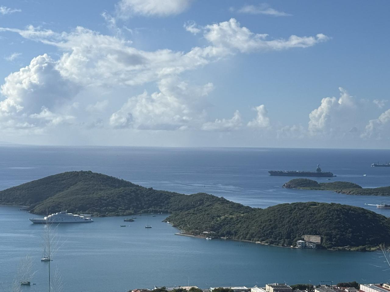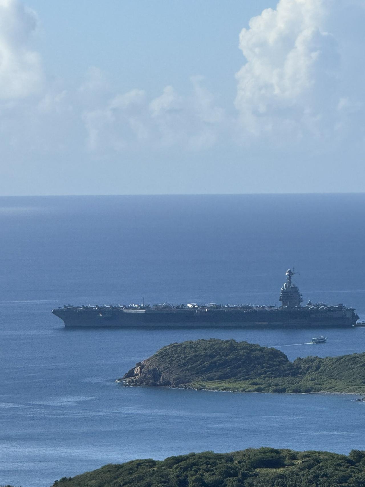 昨天,美属维尔京群岛圣托马斯岛的一位居民拍摄了“杰拉尔德·R·福特”号航空母舰(CVN-78)抵达法国人湾海岸的照片。这是该舰在第十二航母打击群(CSG-12)持续进行的加勒比海非计划部署期间的首次正式港口访问,旨在支援“南方之矛”行动。