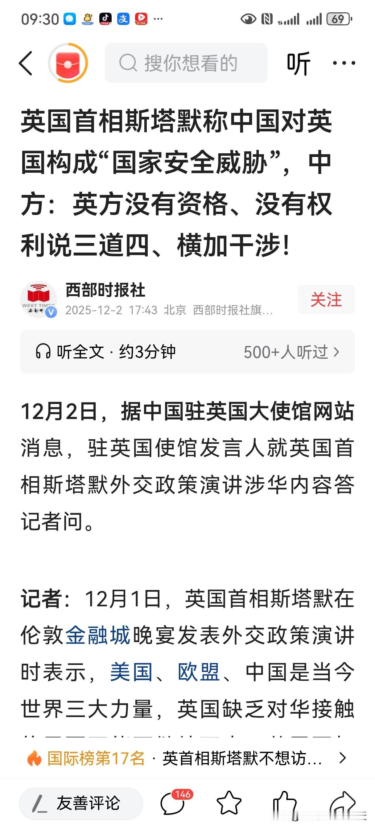 英国人的心态其实挺矛盾的,不与东方打交道,钱包难受,与东方交集过密,那傲慢的心态难受。 于是才出现吊诡的一幕,一边强调要加强沟通交流合作,一边又大谈国家安全受到威胁。 如同青楼女子,既想别人的钱,蠢蠢欲动,又担心自己的牌坊立不起来,我不,我就不。 嘴巴很强硬,身体却很诚实,这挺纠结的,其实英国人只要懂得“掉了毛的凤凰不如鸡”这个道理就会面对现实,就不会老是端起那个已经发霉的臭架子来找优越感了。