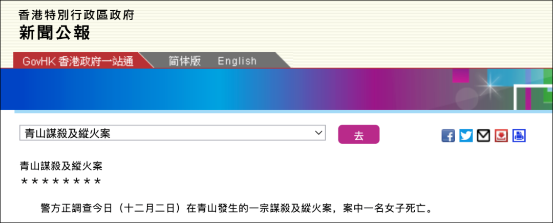据香港特区政府新闻公报,警方正调查12月2日在青山发生的一宗谋杀及纵火案,案中一名女子死亡。
