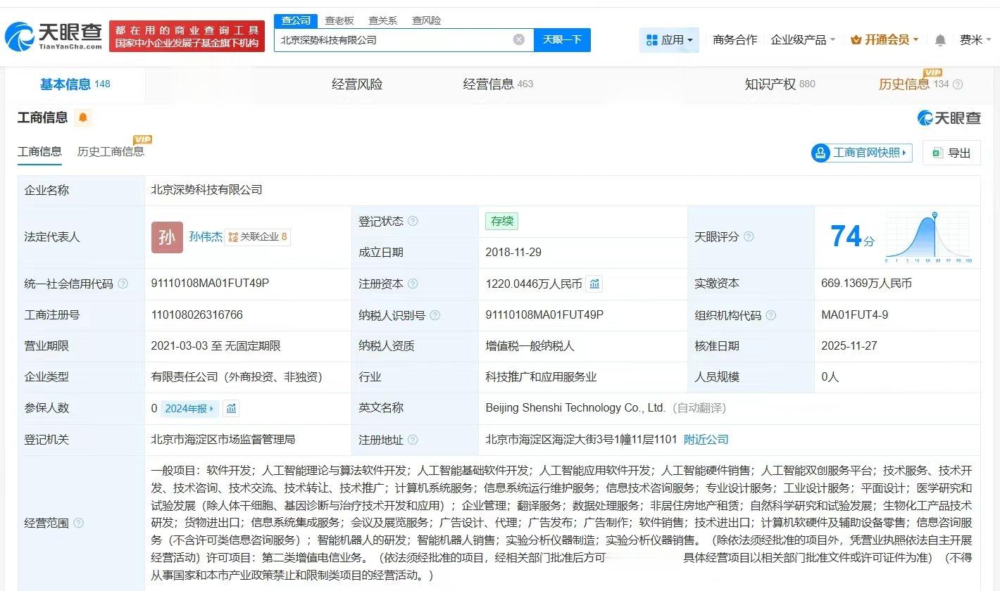 北京深势科技有限公司成立于2018年11月,法定代表人孙伟杰,经营范围包括人工智能理论与算法软件开发、人工智能基础软件开发、人工智能应用软件开发等。股东信息显示,该公司现由张林峰、鄂维南及上述新增股东等共同持股。官网显示,该公司是一家致力于构建微尺度工业基础设施的科技公司。