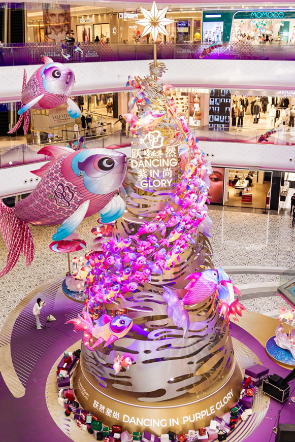 11月18日起,佛山王府井紫薇港携手佛山鱼灯非遗传承人,深度融合百年非遗技艺与现代节庆美陈,打造全国首棵35米高非遗鱼灯树艺术装置、千盏非遗鱼灯共舞,4米高的空飘鱼灯等,共同构成“跃然紫尚”冬日主题展。