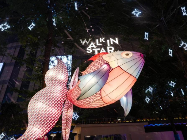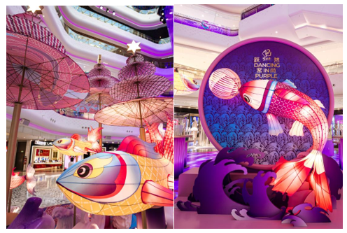 步入水中庭,映入眼帘的鱼灯树,搭配35米高的光影巨境,伴随悬浮鱼灯的轻盈舞动,仿佛将顾客带入梦幻世界。在花中庭,非遗鱼灯跃上节日树梢,与水面倒影交织成趣;4米高的空飘鱼灯悬置于山中庭,以当代设计语言重新诠释传统工艺,营造出鱼游天际的灵动画面。来到户外,怪趣毛绒树、星光灯饰与粉紫锦鲤点缀星尚花园,温馨浪漫的节日氛围随之来袭,为市民游客带来一场唯美新潮的非遗鱼灯之旅。