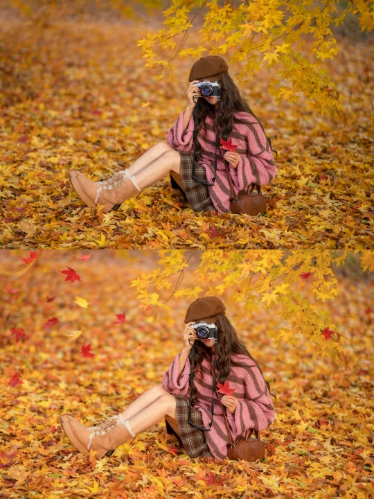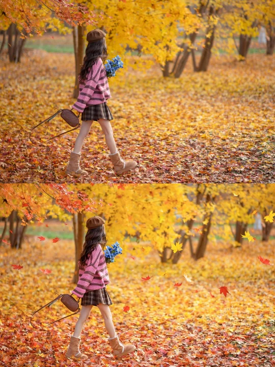 之前每次拍落叶都要捡很久的叶子