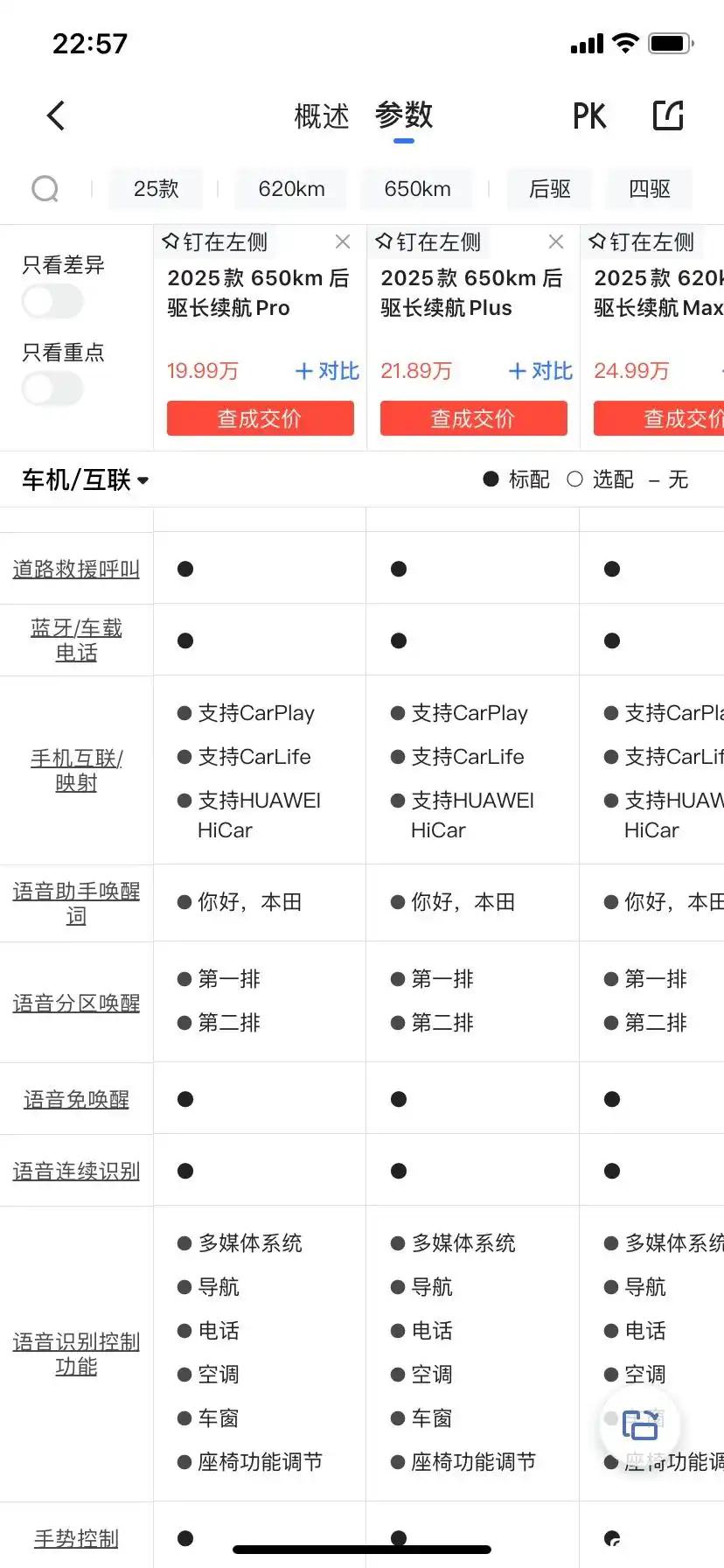 不是,本田掀桌子了吗? 本田是不是要掀新能源的桌子了,这啥时候出了个P7,打开配置一看给我惊到了,15万的车所有配置都拉满了,中型尺寸的车身,续航650公里,电机扭矩也不含糊直接给到420,整车承重600公斤,宁德时代的三元里电池,后置后驱,前双叉臂后五连杆,真皮座椅,主副驾都是电动调节,车机8155芯片,还支持carplay,像这么全面的配置这么高参数的车基本都在20万以上,而且配置还不一定有这个完美,本田直接降到了14.99万,就是内饰设计的有点丑,说实话这配置真的拉满了,已经很完美了。