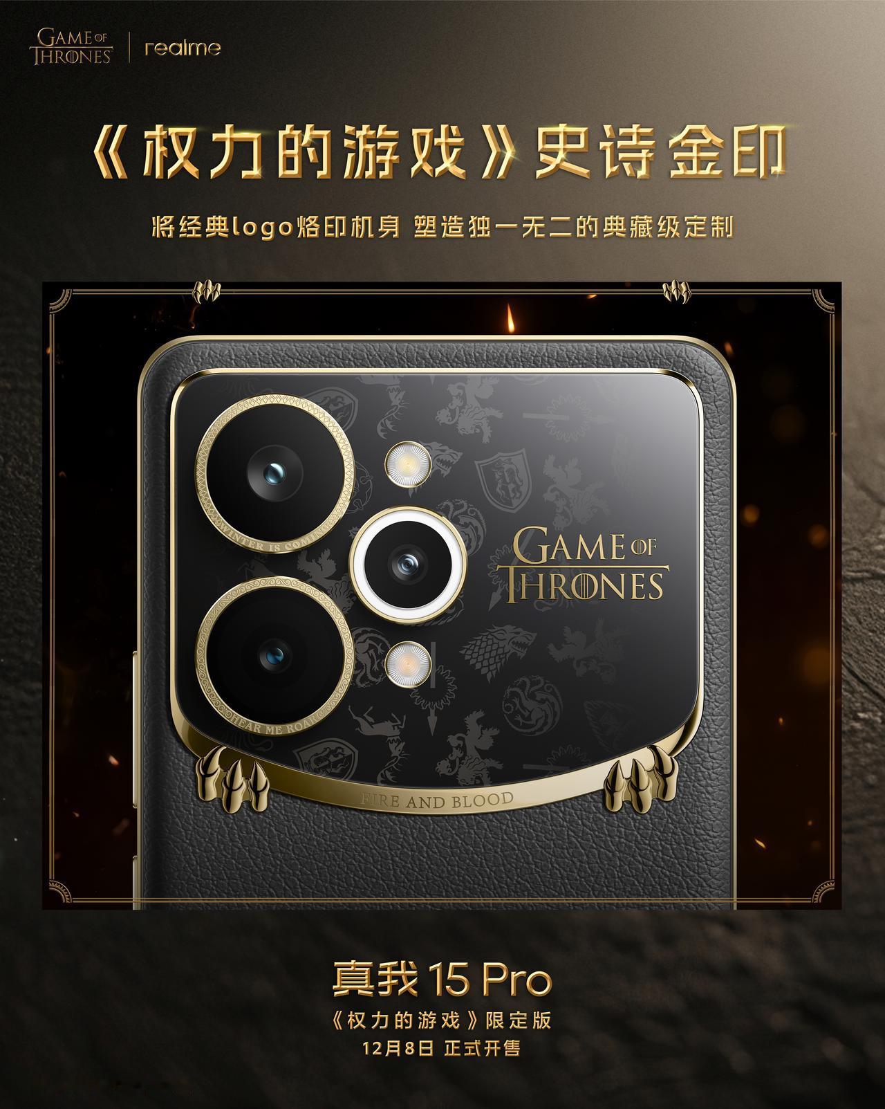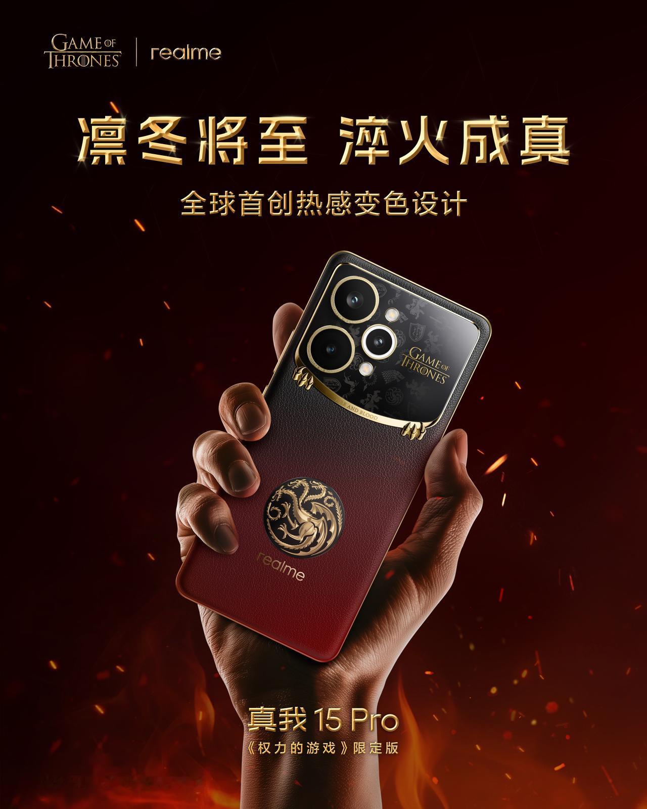 真我 15 Pro 权力的游戏限定版,12 月 8 日发售,采用热感变色设计,机身遇热变红。 挺好看,权游粉丝评价一下?