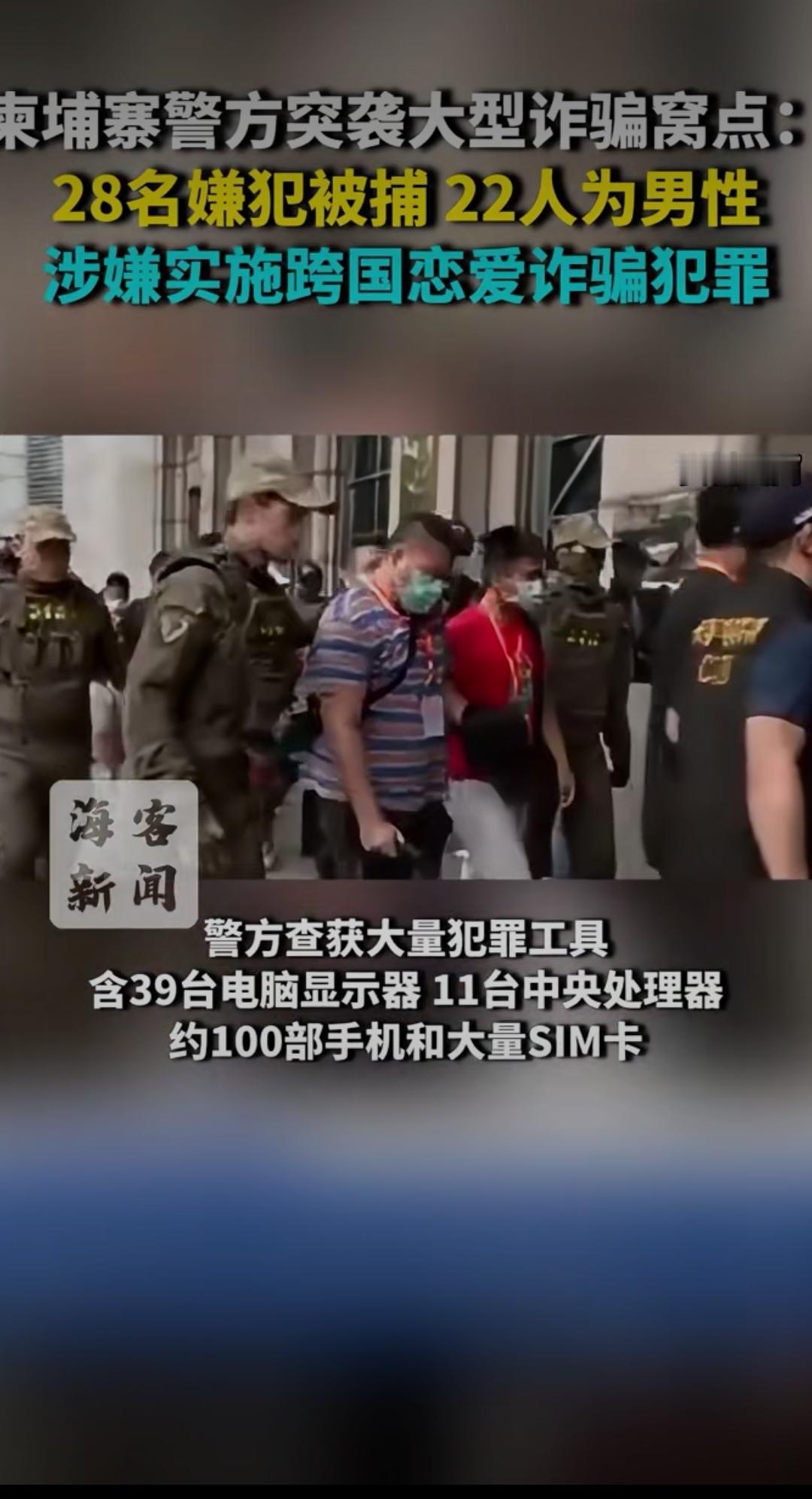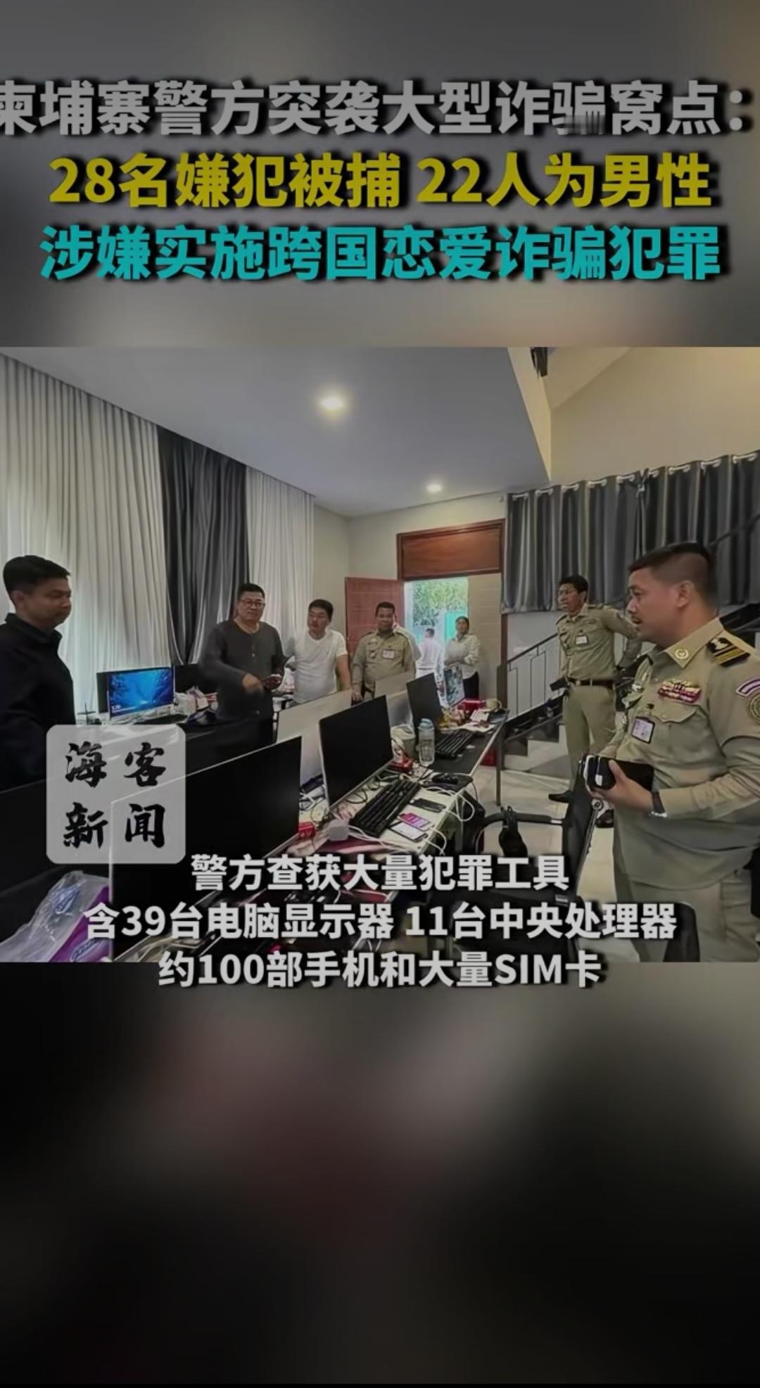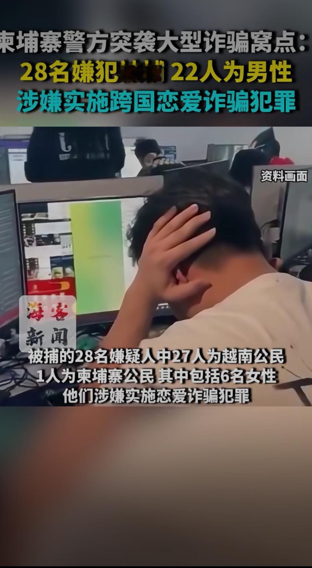 柬埔寨警方雷霆扫诈!28人恋爱诈骗团伙落网,22名男性扮"高富帅"收割感情跨国恋爱诈骗 跨国恋爱诈骗 柬埔寨警方的一场突袭行动,撕开了跨国恋爱诈骗的黑暗面纱!12月1日,金边市菩森芷区的一处居民住宅内,执法人员当场抓获28名涉案嫌犯,其中22名是男性,这个隐藏在普通小区里的大型诈骗窝点,瞬间被连根拔起。现场查获的39台显示器、11台主机、近百部手机和大量SIM卡,揭露了他们分工明确的"感情收割"产业链。 谁能想到,那些社交平台上嘘寒问暖的"海外精英",竟是窝在出租屋里的诈骗分子?这些男性嫌犯堪称"影帝级"演员,有人伪装成身价不菲的海外企业家,有人冒充肩负使命的联合国工作人员,甚至还有人盗用制服照片,把自己打造成危险又迷人的战地医生。他们拿着预设好的话术本,对着多台显示器同时和数十名受害者聊天,用"早安晚安"筑牢情感陷阱,用"未来规划"画下虚假蓝图。 等受害者彻底沦陷后,6名女性嫌犯便粉墨登场,开启"催单"模式:"家人突发重病急需手术费" "跨境项目周转缺笔资金" "帮我垫付运费,收到巨额奖金就翻倍还你"。内江的张女士就被这样的话术骗走6万多元,直到对方索要清关费时才幡然醒悟;在国外工作的程女士5个月内被榨干10余万元,连看病钱都没保住,最后惨遭拉黑。这些受害者的遭遇,正是无数"杀猪盘"悲剧的缩影——付出真心,换来的却是积蓄被掏空、情感被践踏。 更让人愤怒的是,这个窝点利用居民住宅的隐蔽性作掩护,跨境作案、快速转移资金,把"爱情"当成一本万利的生意。好在柬埔寨警方的精准打击没有让他们逍遥法外,多部门联合研判线索、突击行动,用实际行动守护着跨国公民的财产安全。 这场抓捕大快人心,但也提醒着我们:甜言蜜语再动听,涉及金钱一定要警惕!你身边有人遇到过类似的交友诈骗吗?对于这种利用感情作案的骗子,你觉得该如何严惩?欢迎在评论区分享你的看法和防范经验!