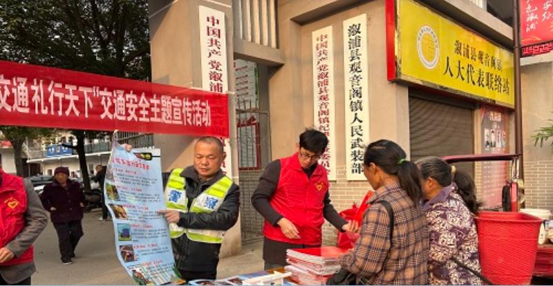 在第14个“全国交通安全日”到来之际,观音阁镇以赶集日为契机,在镇集市及各村主要路段同步开展交通安全宣传活动,将安全出行理念送到群众身边。